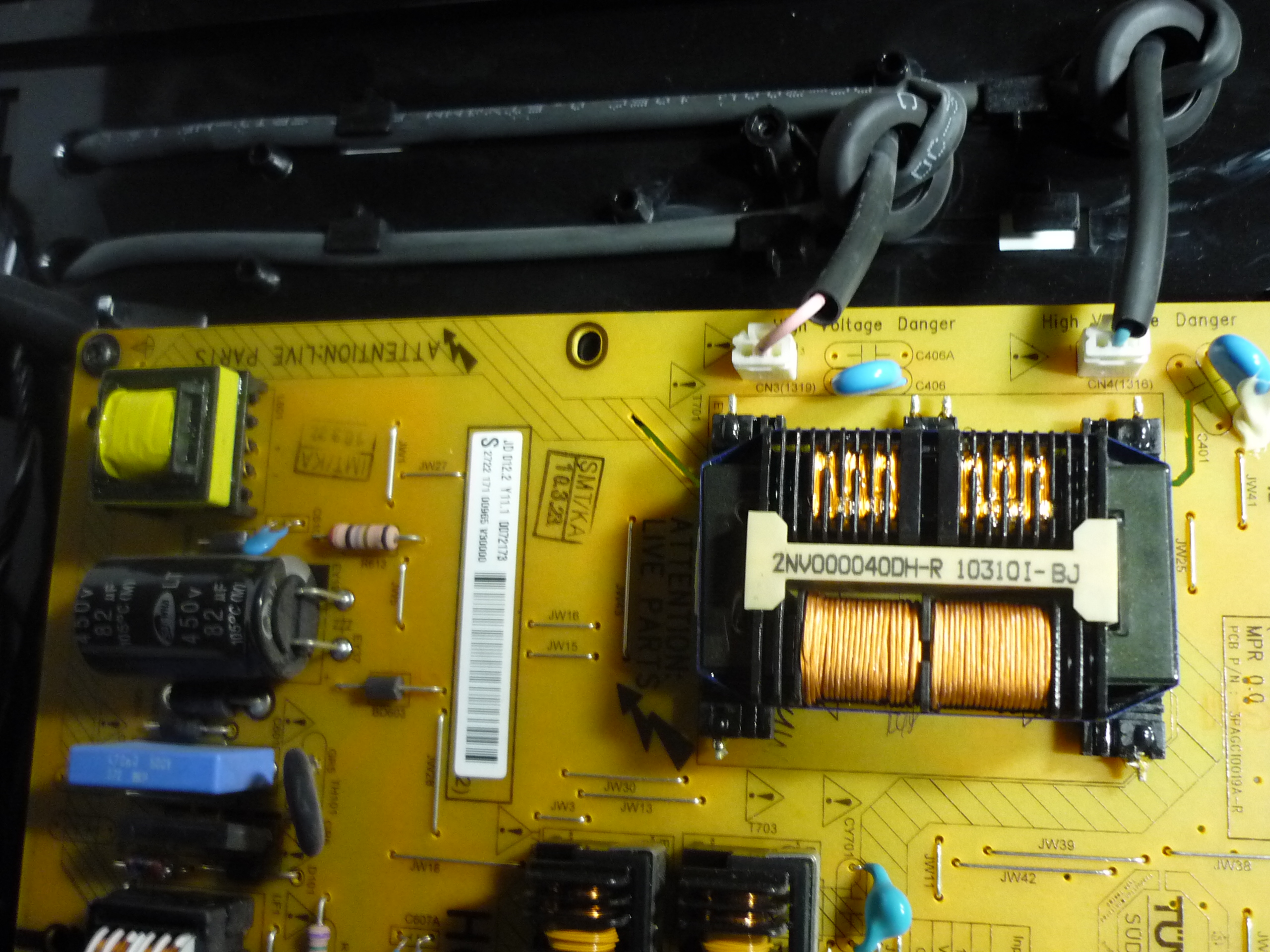 Pulled the back off, all boards looked OK. Pulled the LED connector, turned the set on to see if it would power up but I don't belive it...