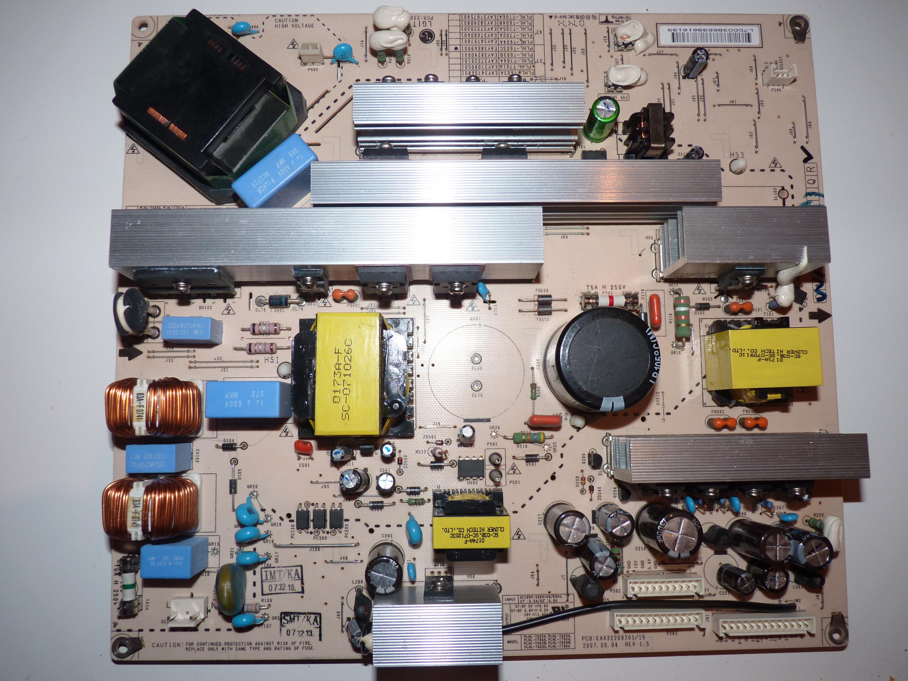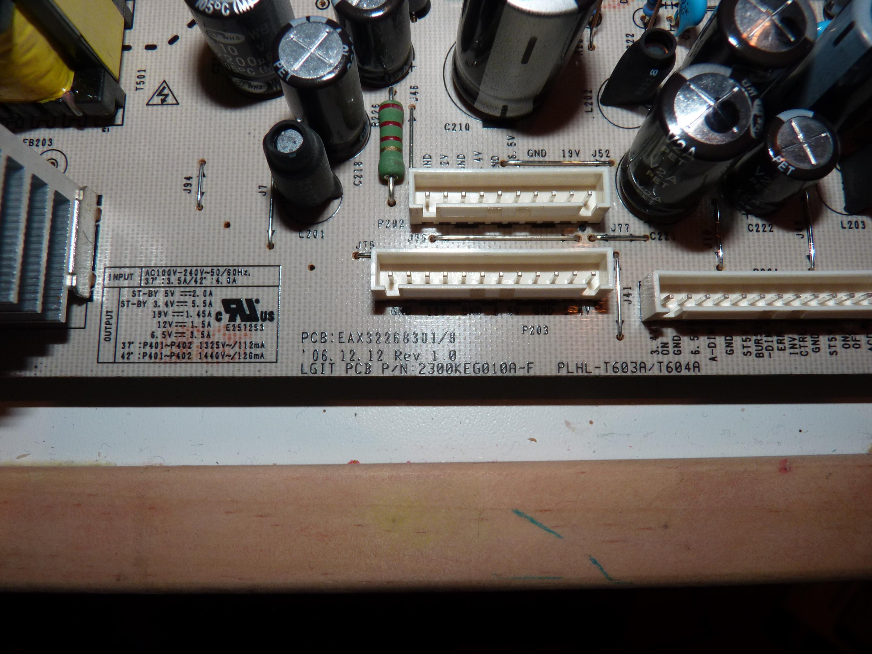 I've an LG 37LC46 which recently started taking longer and longer to start up, I had a search and thought it was the power board that was at fault, I opened the tv up to inspect the board and there were obvious bulges on several of the caps. So I bought this board on ebay, I fitted it today, it resolved the power on problem i.e. powered on straight away, but within a few seconds of powering on the screen would go black and then the TV would go into standby again. On comparing the boards there are slight differences in the old power board and the new board.