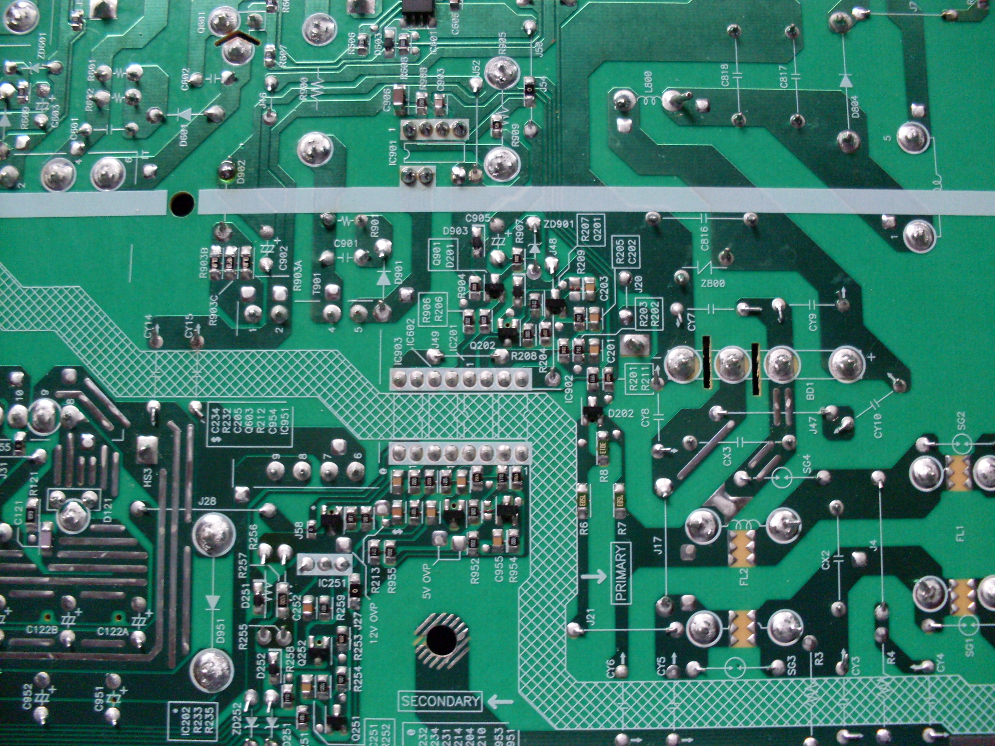 So, it looks like D903, a little SMD diode on the bottom of the board, is a potential candidate. It's near C905. This develops the supply voltage for the main switcher IC. It is possibly open circuit, which could be caused by a short, or the initial failure.