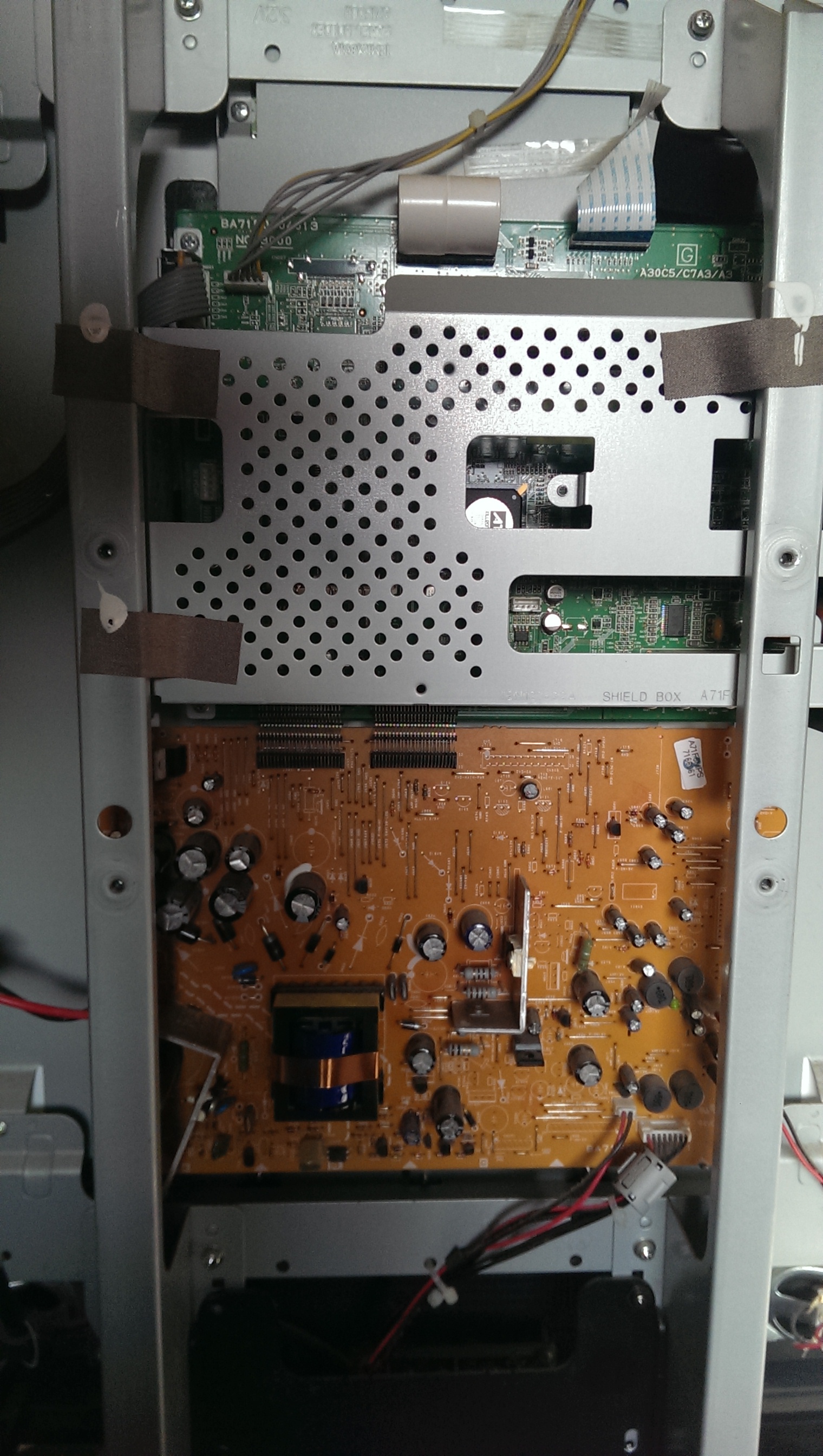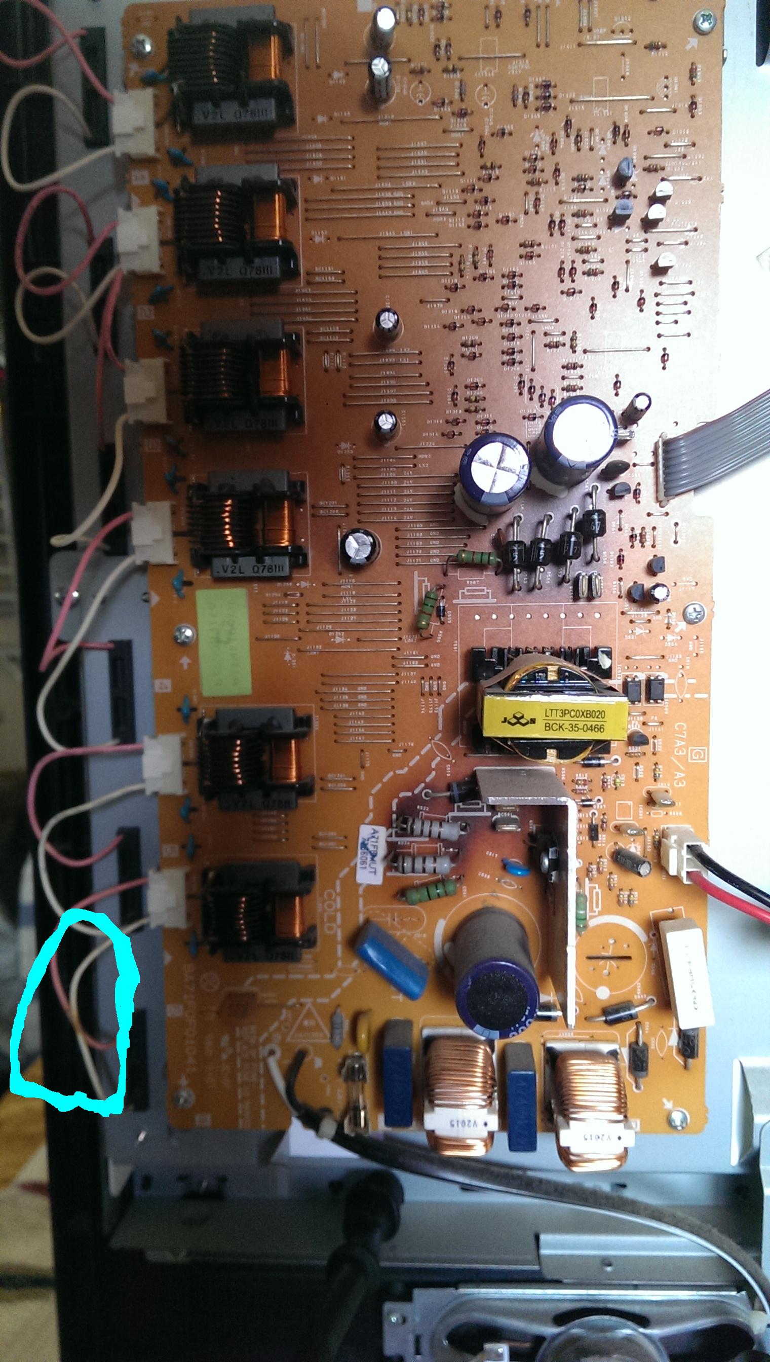 check out my thread i think in your 3rd pic the red and white wires at the bottom at shorting out because they look like they got hot and might have burnt through the plastic casing causing your problem. check out my thread it is a sylvania but the setup is close. post back if that is the problem and that fixed it and if it didn't fix it still post back anyways please.