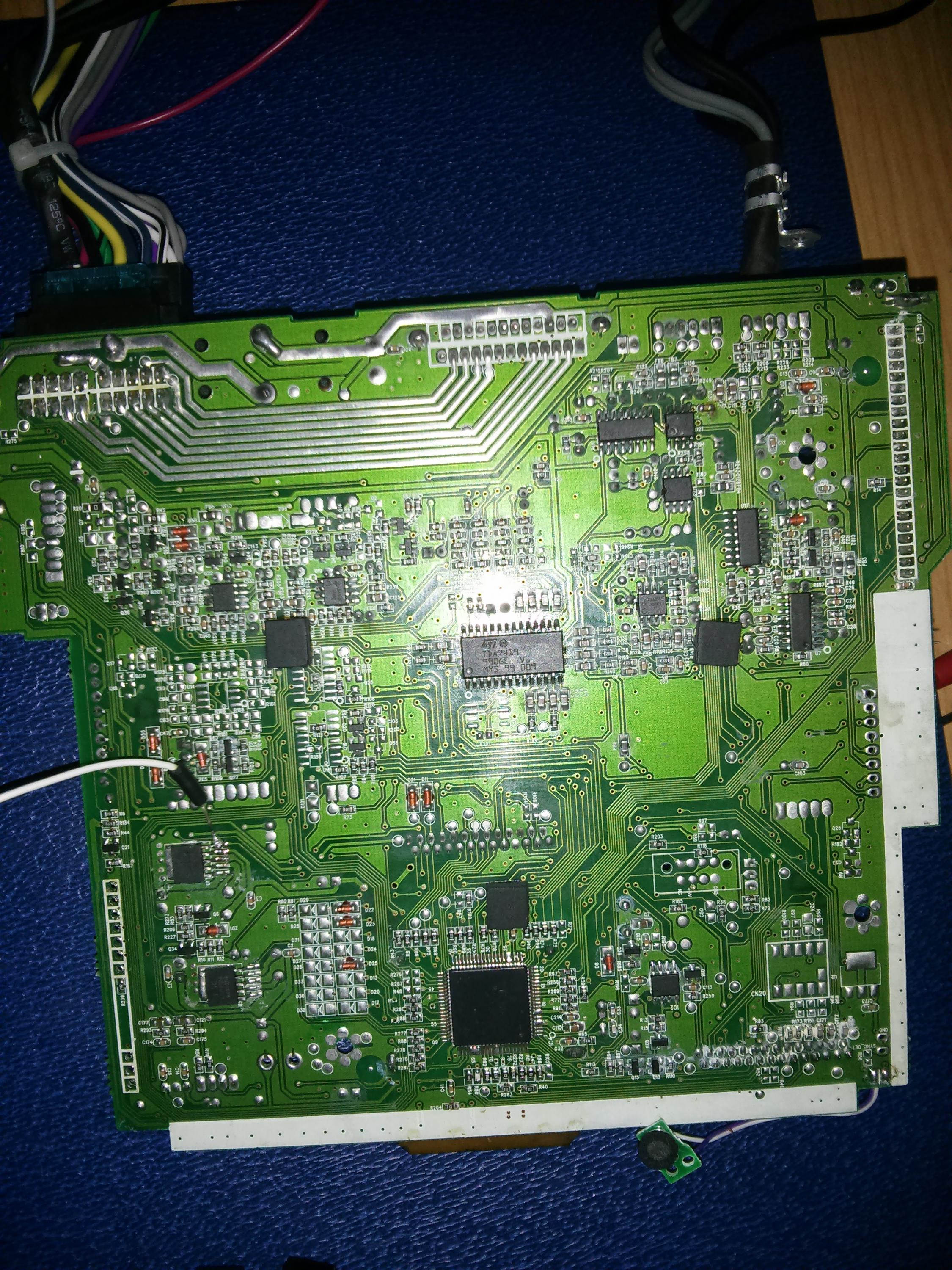 I have checked knowing the pin-out of both of the memories the Vcc pin and when i turn on the device, there's no alimentation voltage on any memory. So I though it could be some problem related to the DC-DC converters which are located at the bottom of the main board. They are two LSP3124 which have 5 volts on their outputs. When i turn on the device, one of them set to ON state (pin 5 to ground) but the other one is set to OFF (5 volts on pin 5) so the "optical board" aren't not receiving alimentation. I have connected the pin 5 to ground in order to give power to the optical board and I can see the laser of the cd, but anything more.