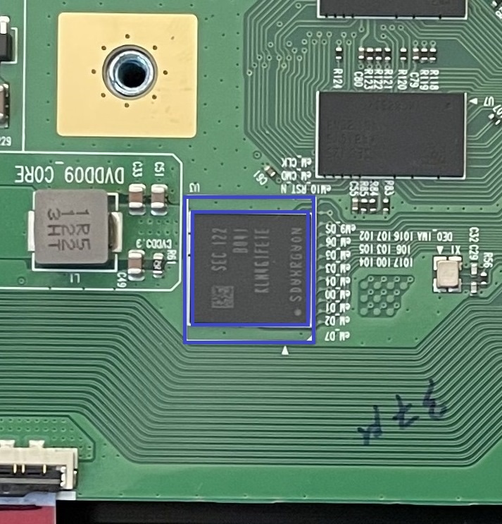 I disconnected the 2 black sockets on the TCON board (from the PSU) but that didn't stop the flashing, so I pulled the PSU, measured 3.51V on pin 6 of socket 6401, connected it (in order) to pins 5, 1 and 3, and read 12.85V on TCON_12V and 21.6V on EVDD. (I couldn't find the referenced sockets 501 and 601, so I measured the voltages from the pins of socket 6601.)