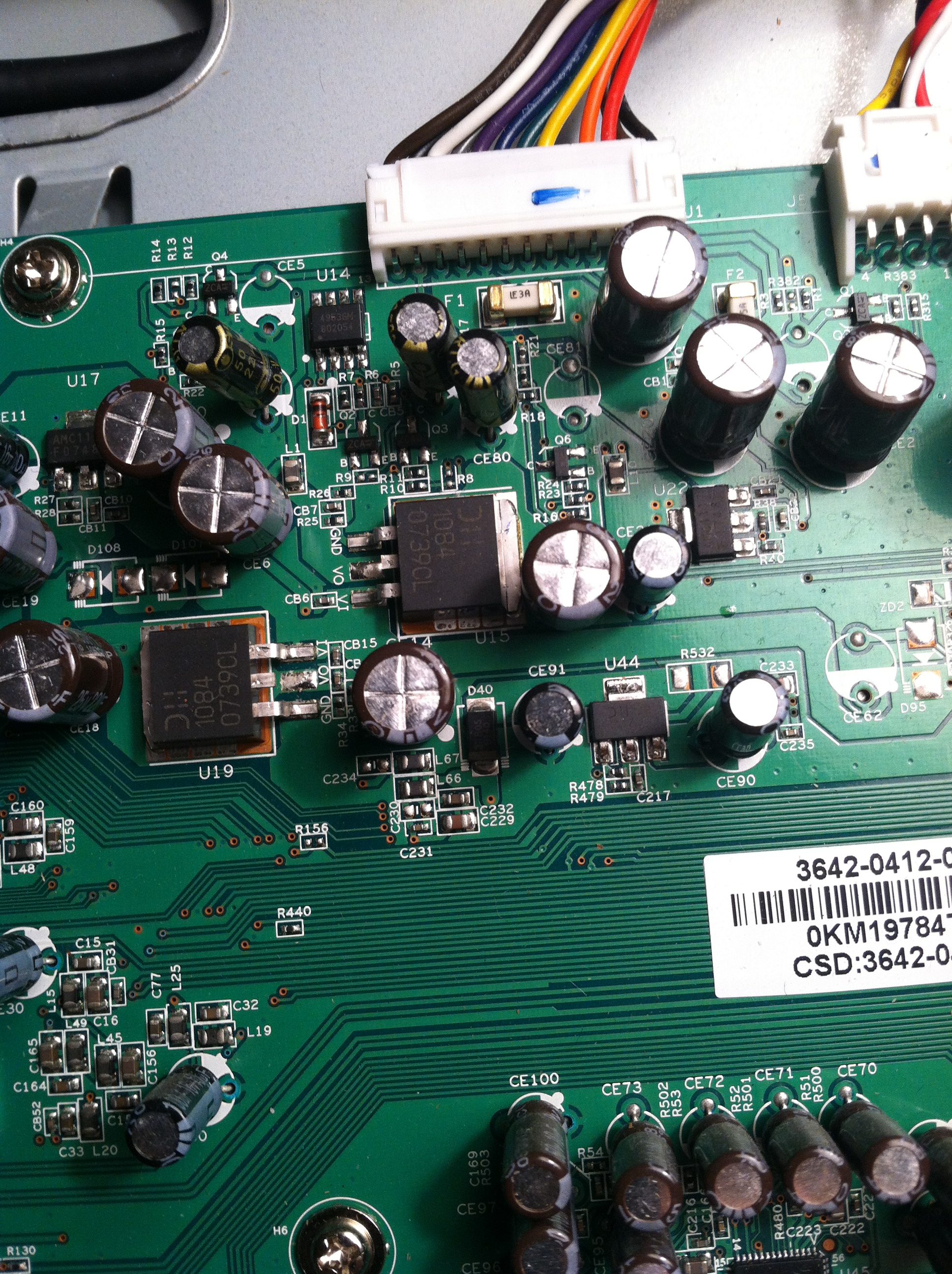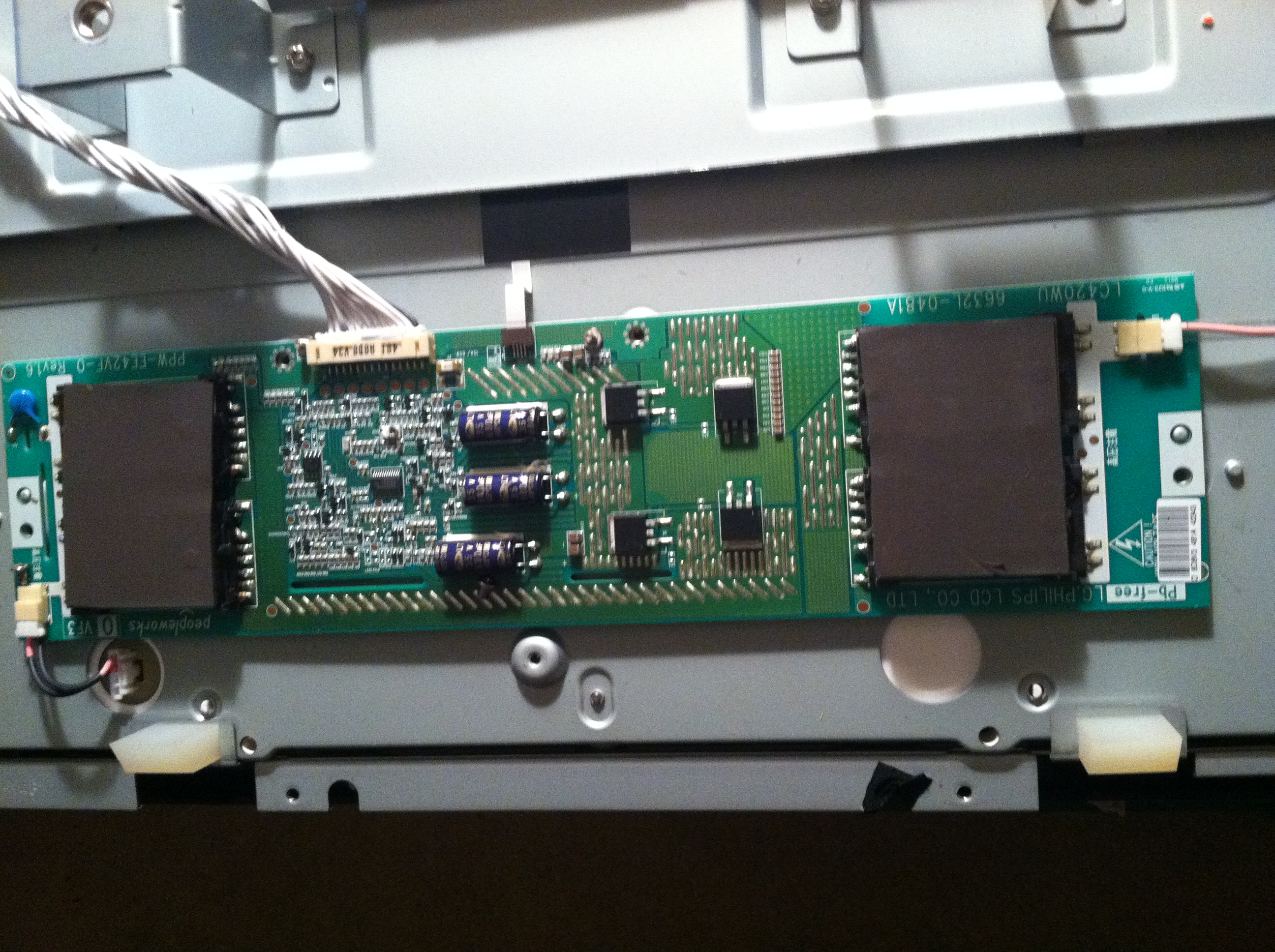 then i first started to check the power sup caps all checked ok and checked the Inverter board caps they seem a little bit bulge but they checked good ESR but since i had to order a new remote control so i ordered also 4 - 470uf 35v 105degrees caps,i took out the inverter boards and put in the new caps fairly easy job,closed tv and so far so good tv looks good after 2 hours of working,