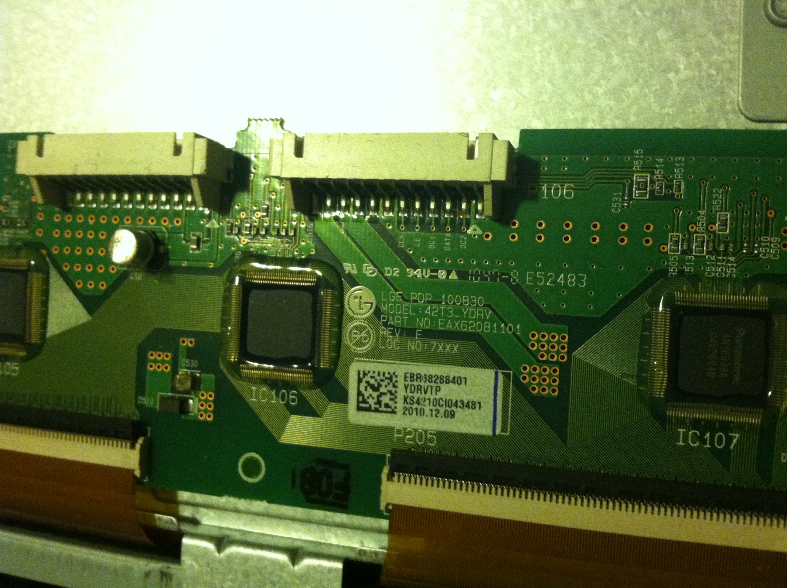 I opened this one up this afternoon. It wouldn't turn on. Red indicator light at standby. When you power the set on, the LED would shut off for a second them come back on and stay on. The set would never power on. I opened it up and got it to power up with the Y-Sus unplugged. It has the EBR68341901 YSUS board and the EBR68288401 buffer board. I found 3 bad 30f124 and 2 bad IRG71C28U transistors. Will a test for shorts between the connectors on each side work like on a Samsung buffer?