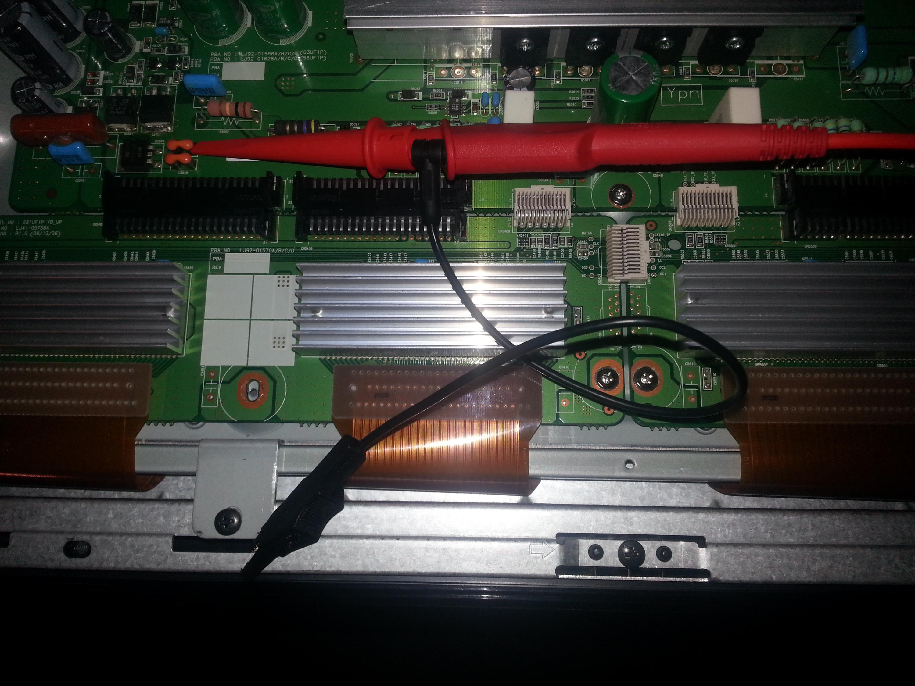 See here. This is the point to attach probe hook, attach the black ground lead to a screw hole or metal frame work.