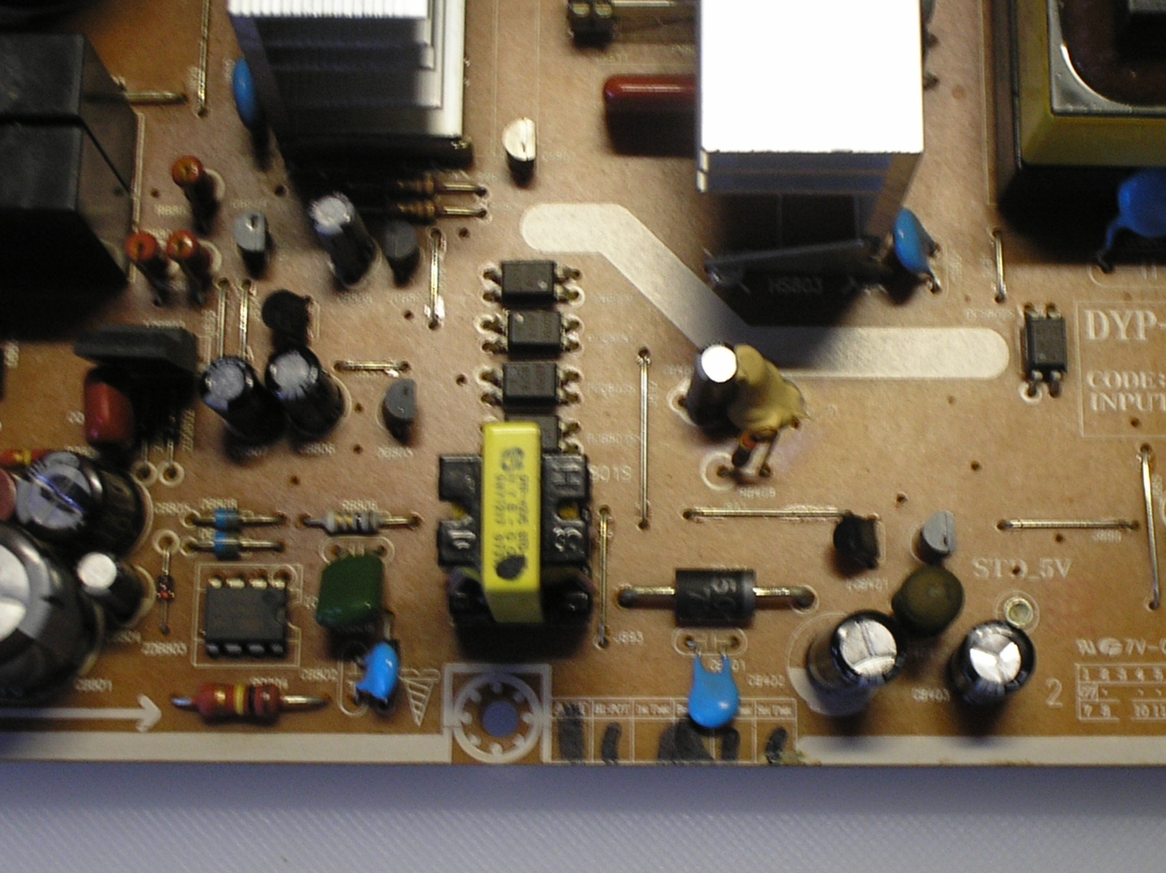 Hoping someone can help, I have pulled the power board from my Samsung tv, as I keep getting a clicking from the relays on the hot side of the board which is a DYP-42W2PLUS , 220V input supply, I have checked all the caps and all seem to fine . When I disconnect the plug from the CN801 port the clicking stops, I get 4.86V at the standby but nothing else 12v measurement non existent , I also get no readings from Vs205 or Va63.