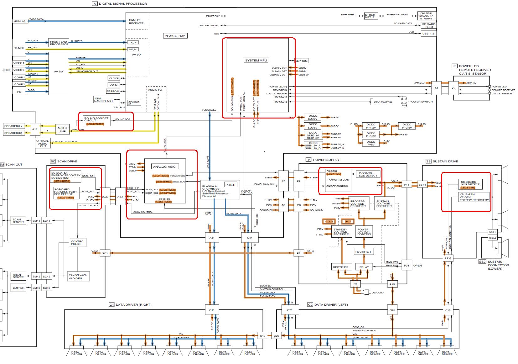 Shorted Vsus will short the PSU. Trips SOS4 which is sensed by the PSU Micom. So in this instance you check the PSU voltages, you find Vsus missing, next step is to isolate anything connected to the Vsus line, you find it comes up clearing the PSU, you know either SS or SC had to be shorting this, you then check those.