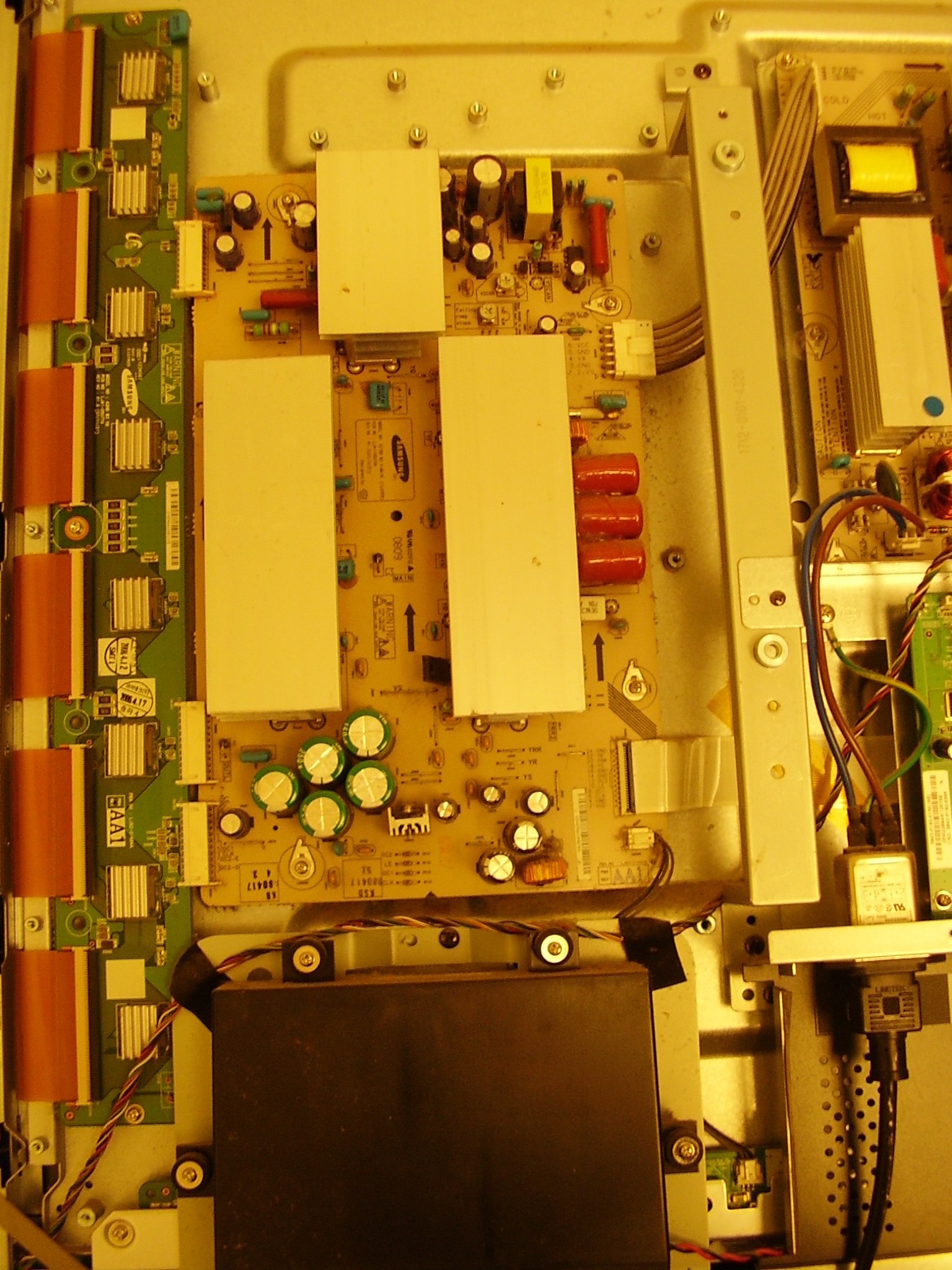 Hi all, I have a Vizio plasma when i plug it in the orange vizio light comes on and when i push the power button the vizio light turns white and i hear clicking but no picture comes up. I am not familiar with Plasma tv's but i did check the fuses and there are no bulged caps. From what i have read it sounds like power supply problems but instaed of ordering one for $50.- 80. i would like to find out whats bad if it is indeed the power supply. Hopefully the pictures will help.