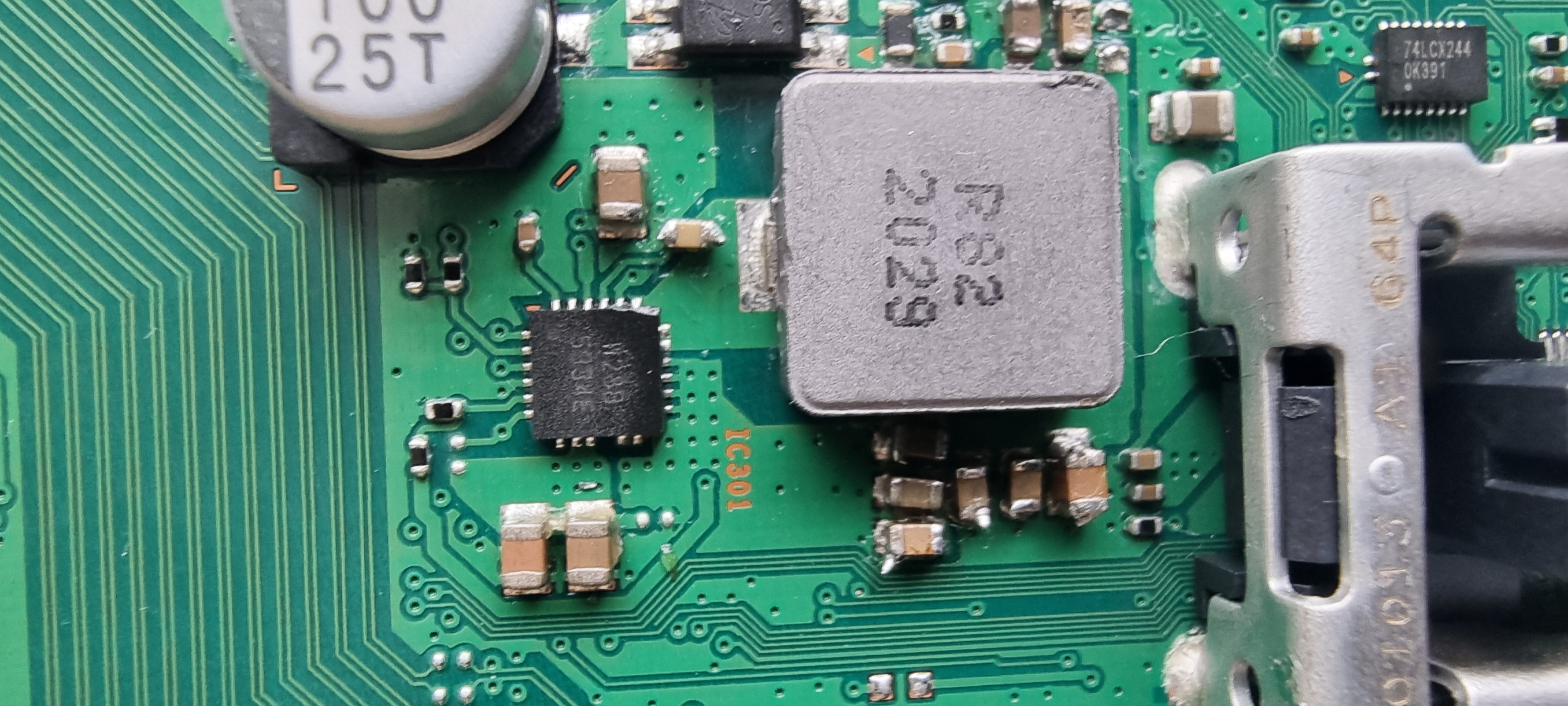 ??Potential issue: I note the coil and surrounding (messy as I removed/reinstalled them all) caps in image XXX have a 0.6ohm resistance to ground. I injected volage and the most the board drew was 0.6amps, nothing seemed to get hot. Removed all connecting caps, but the coil had the same resistance to ground. I thought of removing the closest IC but the caps connected to it are all okay and it didn't get hot under the IR camera when I injected 1-3 volts.