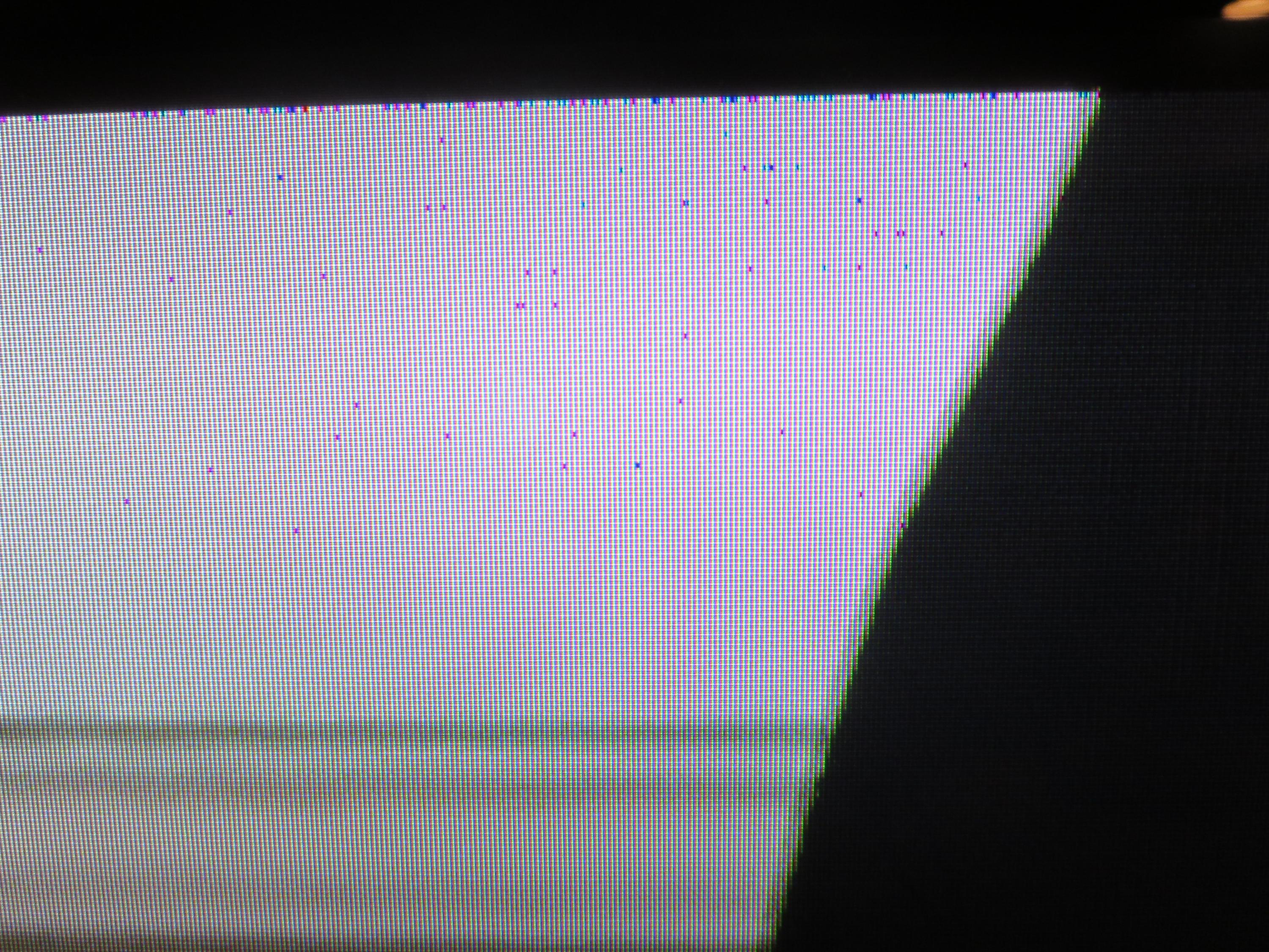 See pics. You can see the color of the pixels making up the lines and how they fade on the additional pictures over time.