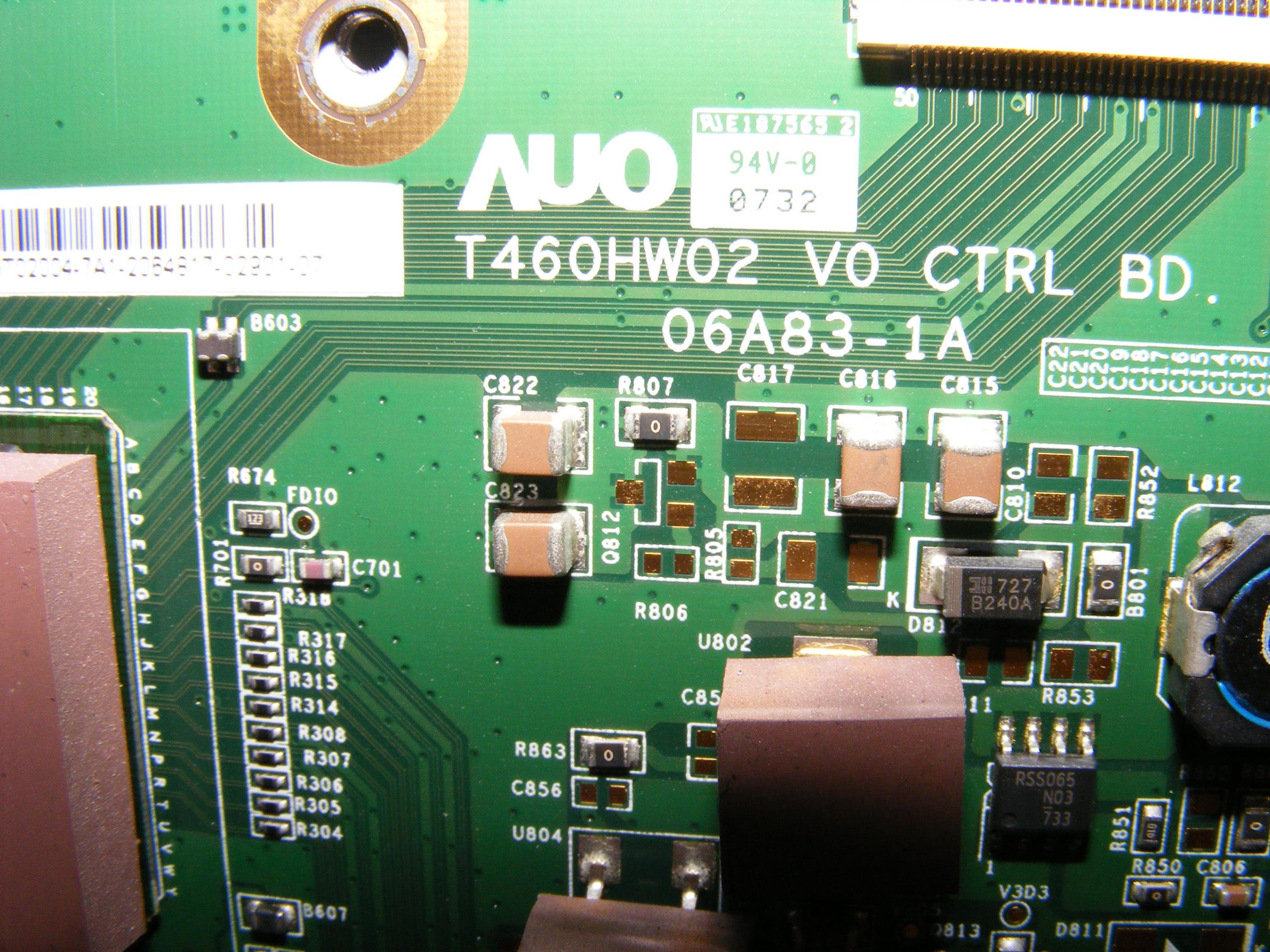 It's an AUO T460HW02 V2. The problem happened when I messed up replacing the AS15 chip, probably introduced a short, and a transistor Q812 went up in smoke. I know there's a good chance other stuff might be dead too, but figure it's worth a try replacing the transitor and re-doing the AS15 and seeing if I can get it going.