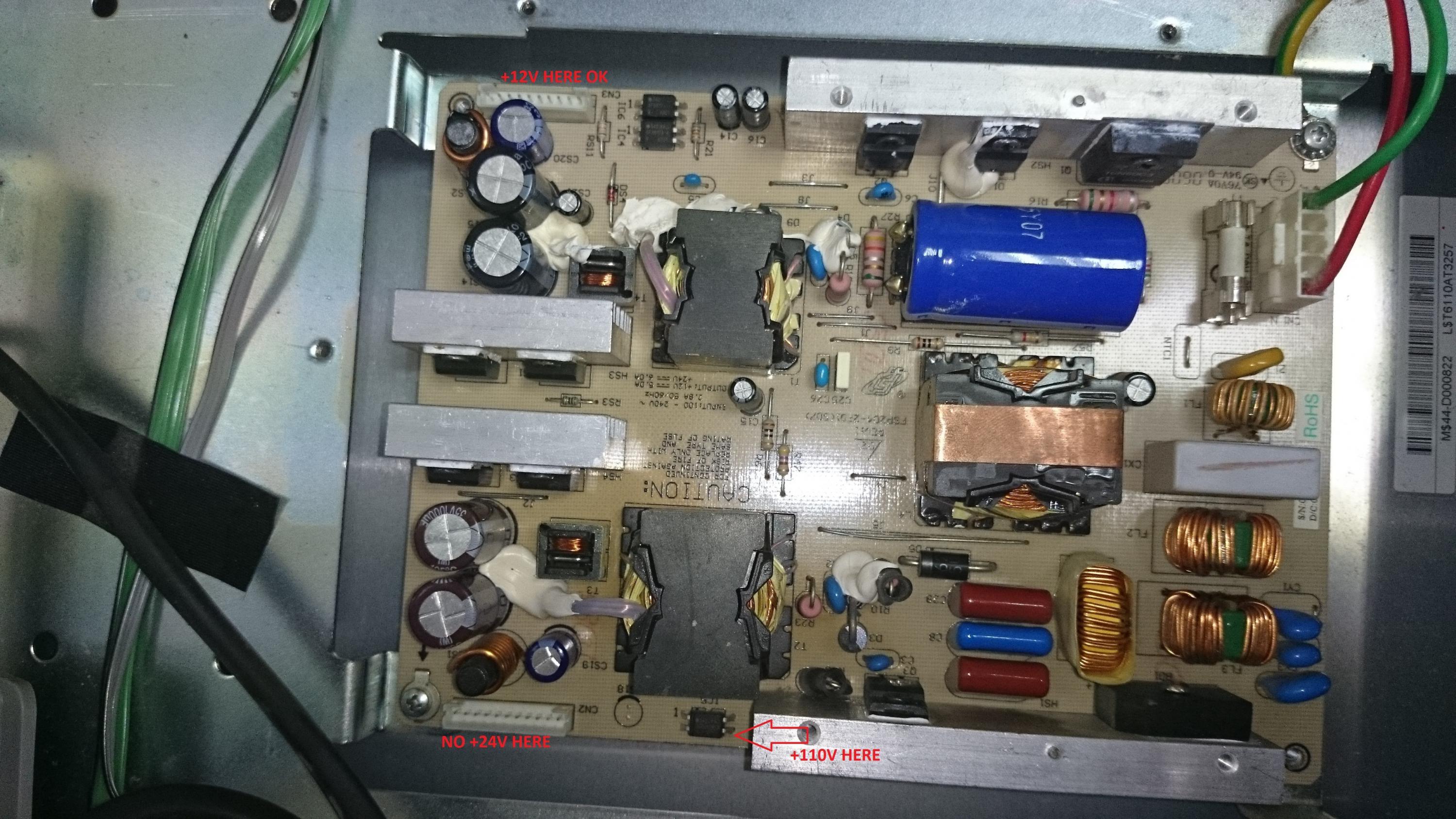 I replaced CS12, CS13, CS15, CS15, CS19 and CS20 bulged capacitors. Changing these made no difference to the TV and I still dont get +24V on the CN2 connector.