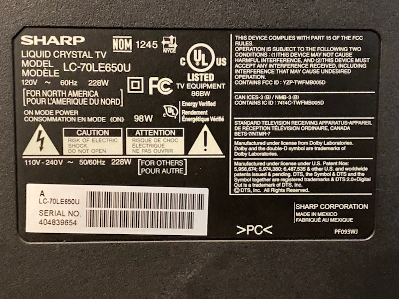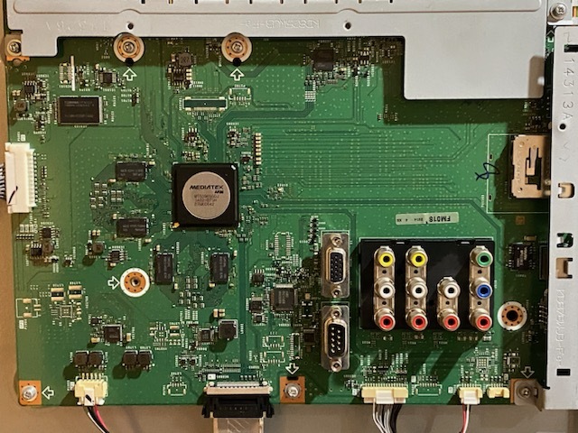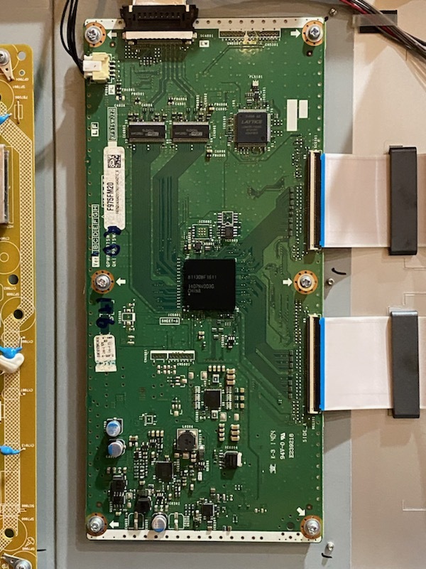 Hi All! So I got this LC-70LE650U monitor from work.... Worked great there! When I got it home and hooked it up I got this split/greenish display problem. Sound works great but nit the display. I tried two different computers and two different HDMI cables and no go. I opened it up and reseated each cable etc and I still have the same issue. I attached images of the boards inside also. Any ideas? Joe