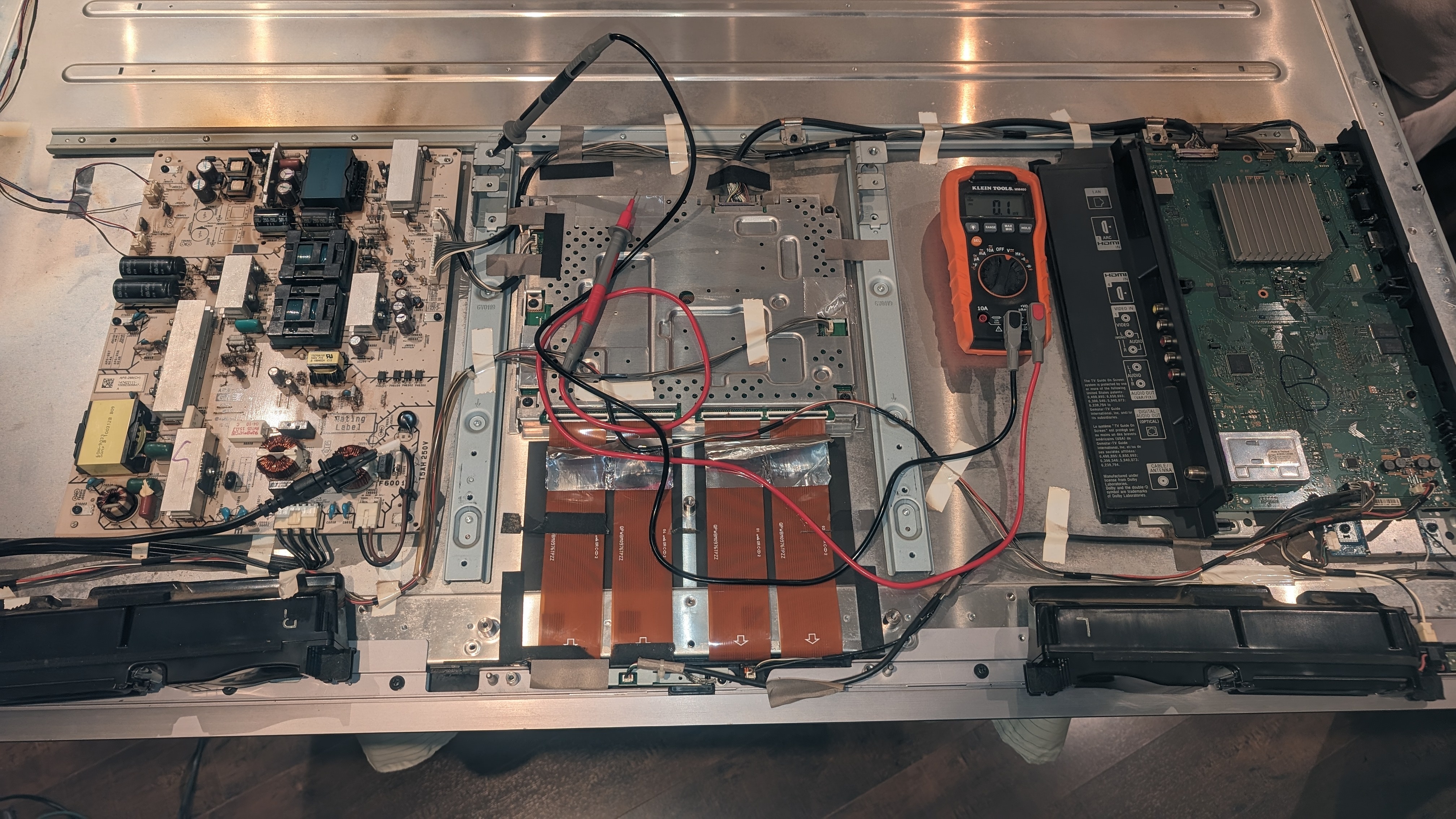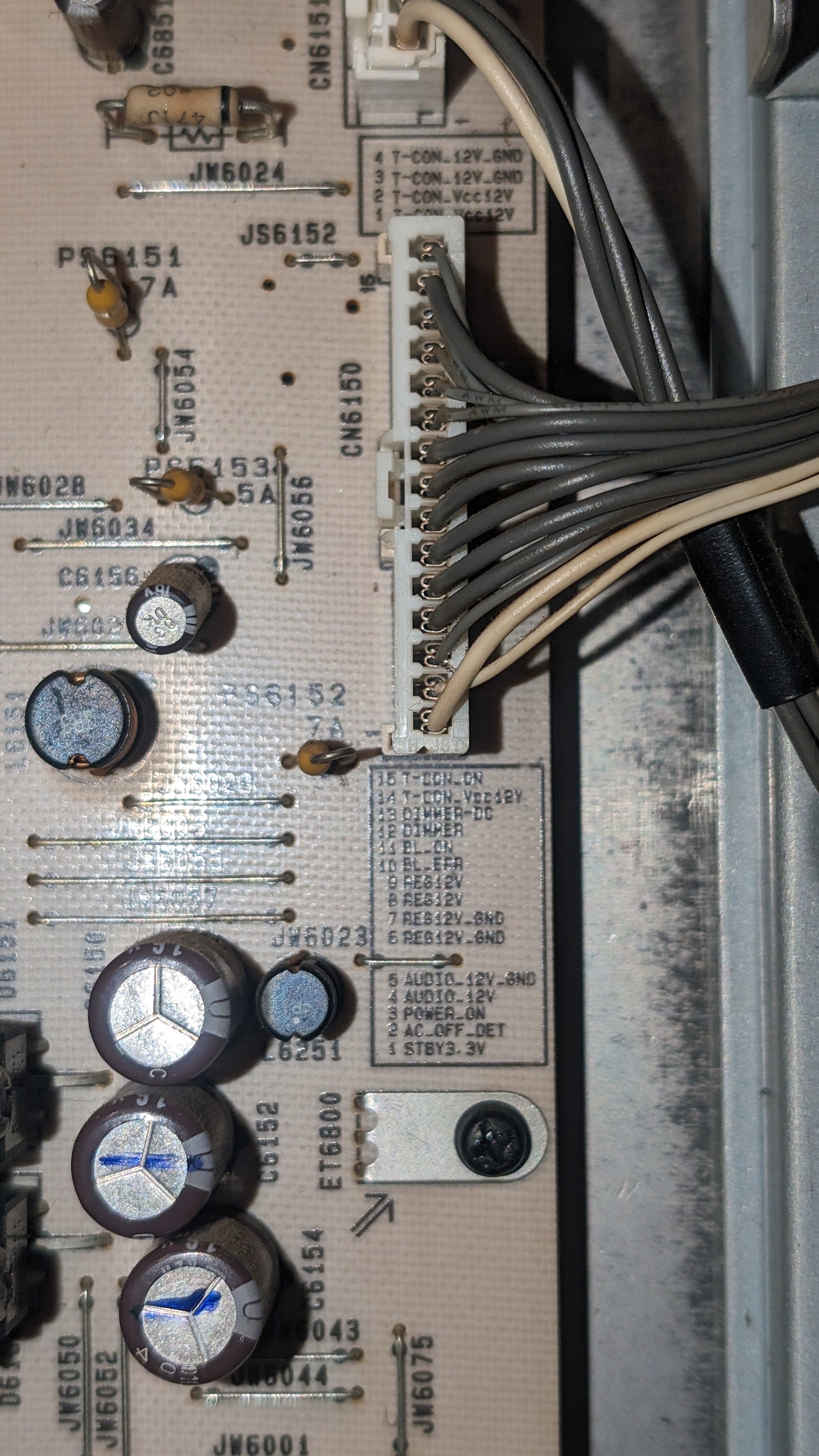 Hi all, just curious if the BL_ERR signal is active high or low? TV has the 6 blink error code and I've changed the backlights as they tested questionable (4 strips tested - 203VDC, 203VDC, 203VDC and 175VDC). The new strips all tested at 175VDC. Now when I turn it on, it tries twice to come up and then the 6 blink code. During the this time the BL_ERR pin is high and drops low momentarily, then does it again on the 2nd try to boot (so Im assuming active low). The other thing is the backlight voltage ramps to ~280VDC from around ~160VDC and then back down as the TV tries to boot again. Does anybody know what the backlight voltage is supposed to be on this model?? I think it's low as there's two backlight supplies from the Power Board - one for two strips in series and then the other two.....so based on testing the lights earlier, I would need at least 350VDC to turn them on, right? The caps on the power board are only rated for 350VDC, so that doesn't seem right. I'm confused and hoping somebody can clarify.