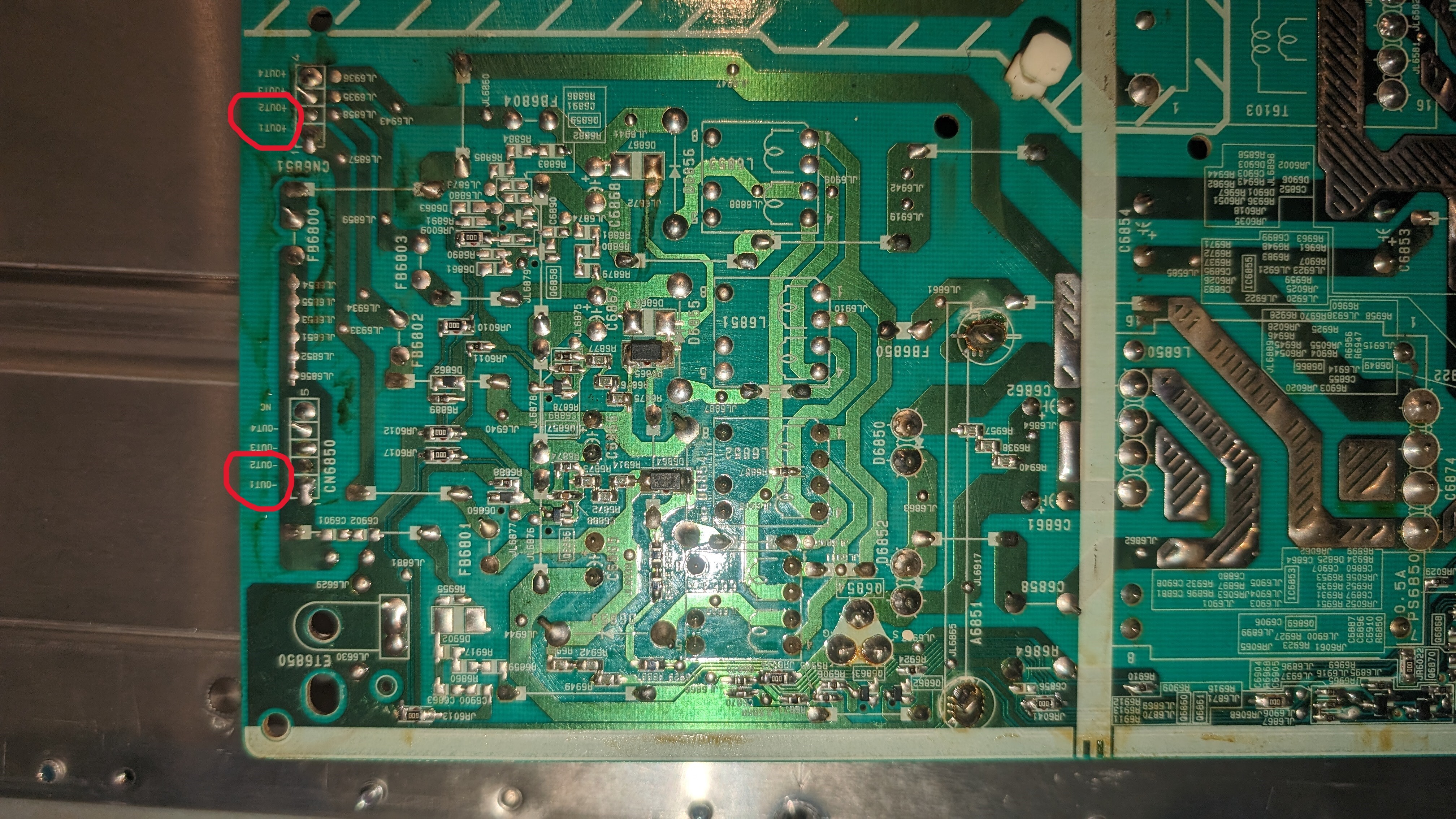 I also tried shorting STBY3.3 to Power ON and BL_ON and got a stable ~288VDC out on both outputs to the backlight strips....but they won't light up, like I said I think the voltage is too low. I just can't go higher in voltage as it's reaching the 350VDC threshold of the supply capacitors.