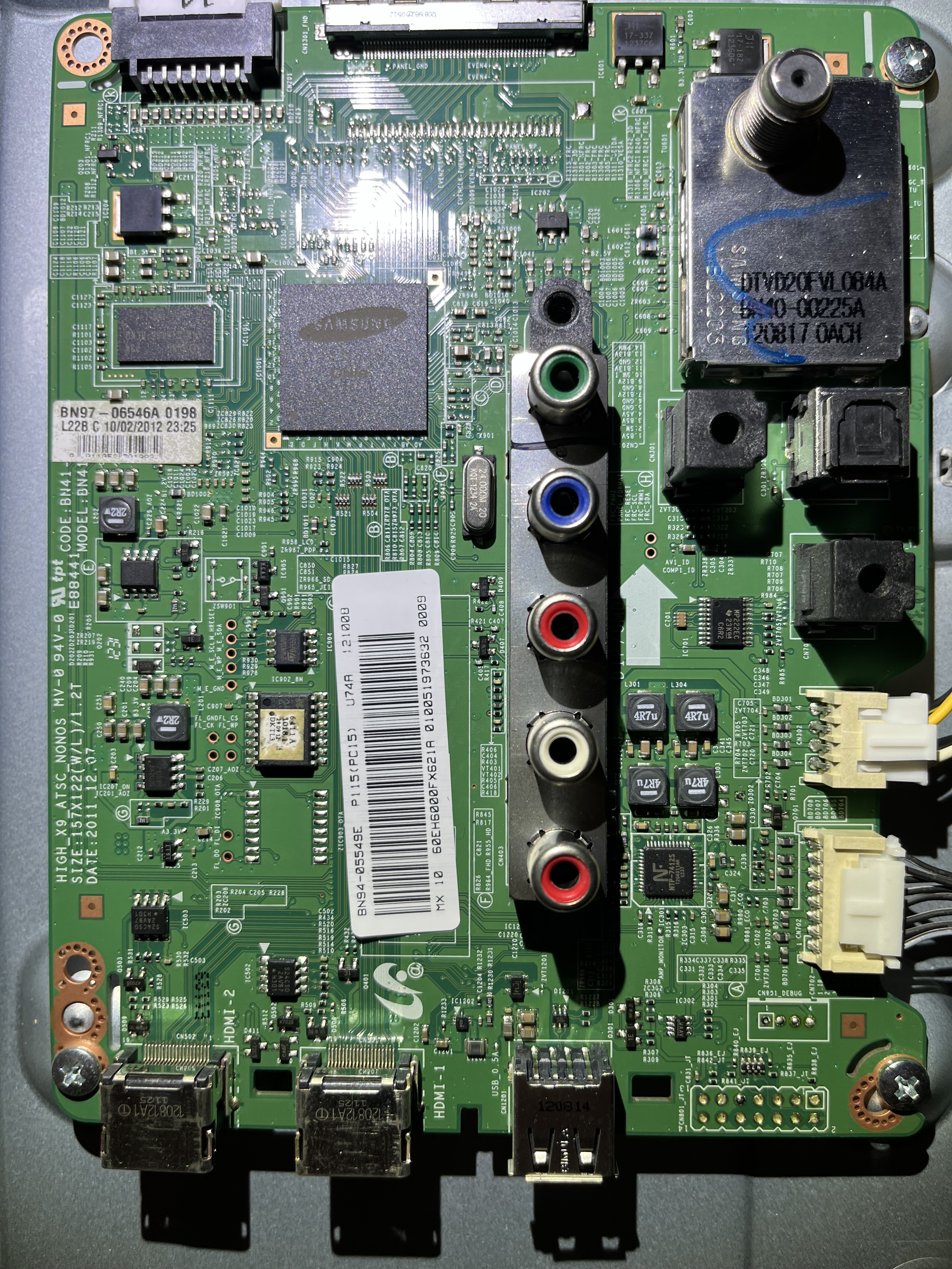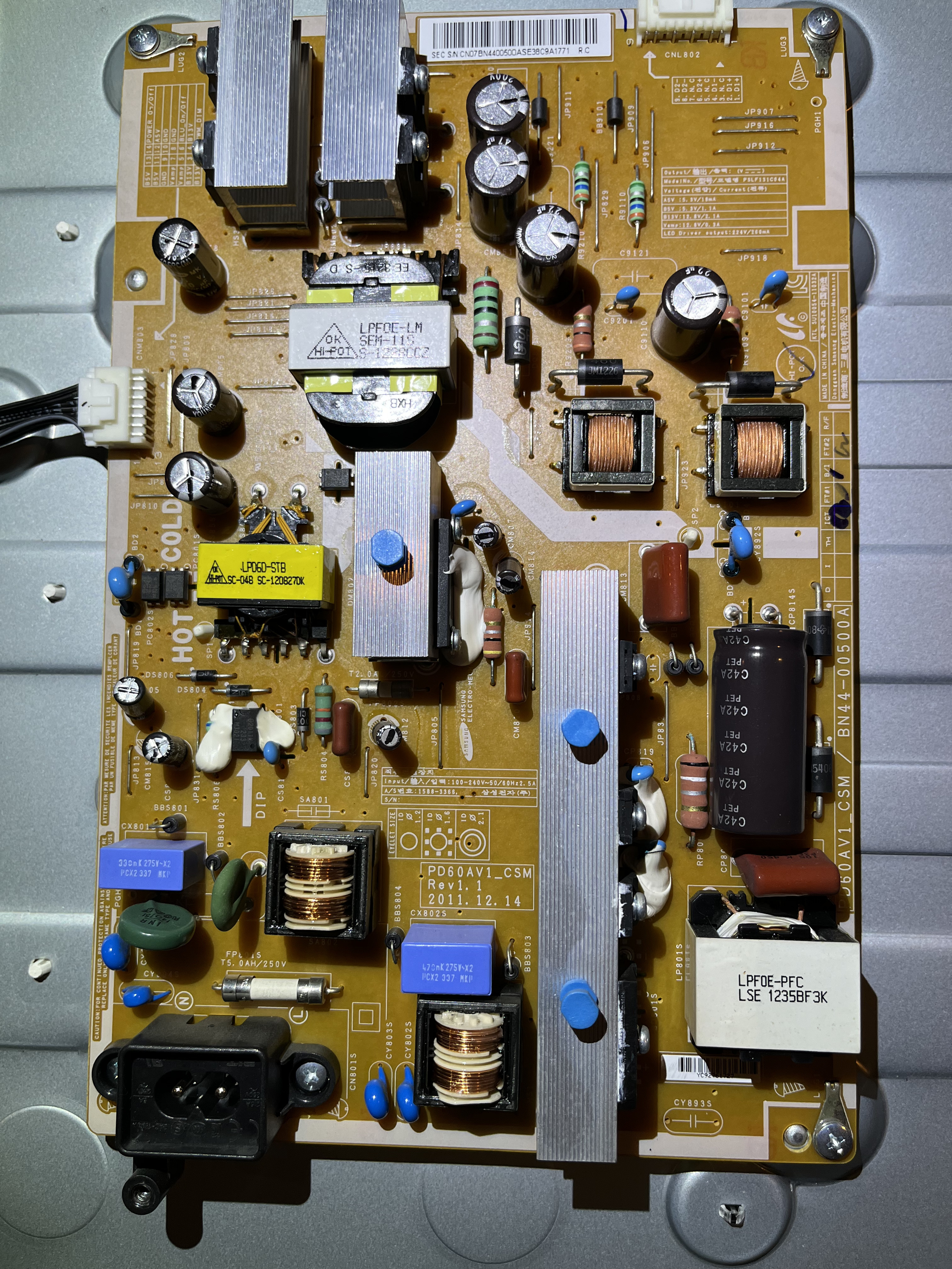 Attached are pictures of the power supply as well as the whole TV back. I didn't notice any swelled caps.