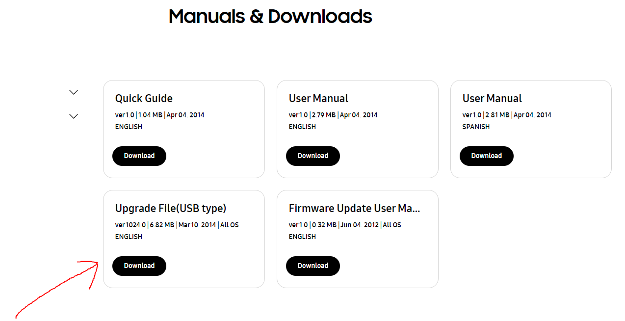Try updating the software via USB. https://www.samsung.com/latin_en/sup...XZP/#downloads
