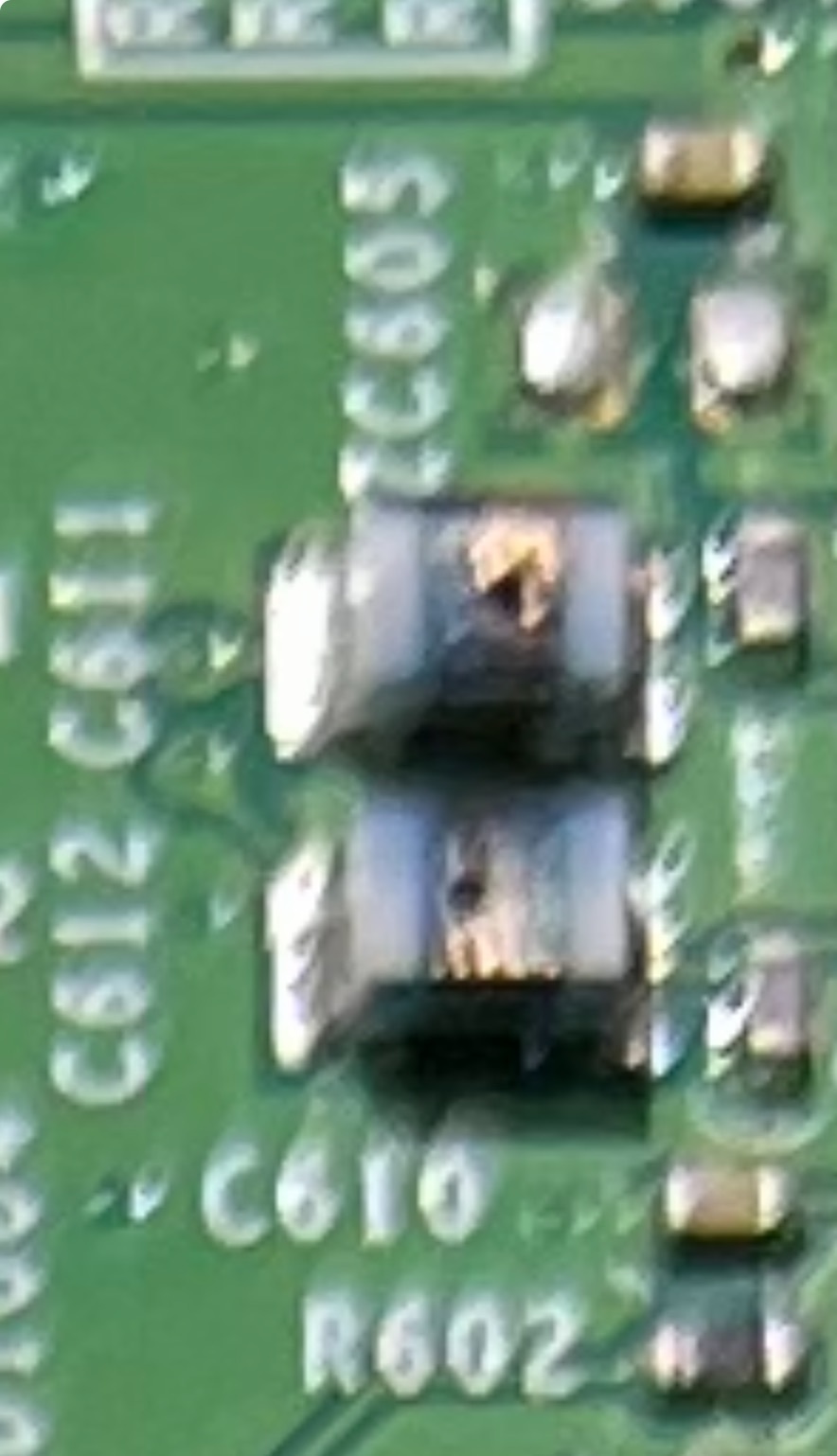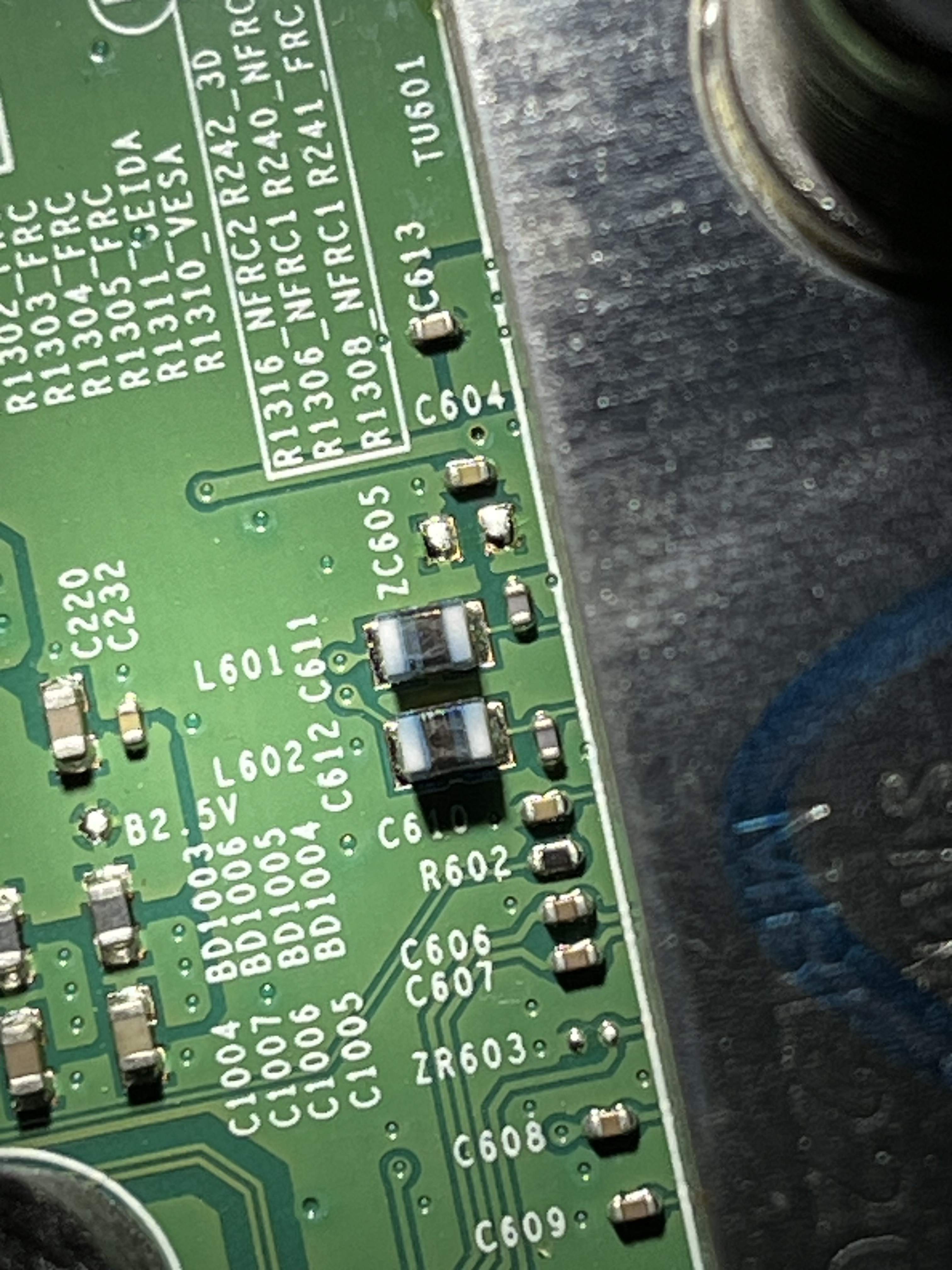 Any idea what the value of those caps may be? I'm not sure I'm up to replacing surface mount caps free hand. I worked in component level circuit board repair decades ago (1998) and used a microscope to replace these kinds of parts as well as multi legged chips. I don't have access to that kind of equipment, and my 55 year old eyes aren't what they used to be!