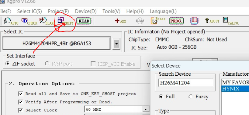 2) In the options section point number 2 operation says "30 mhz, vcc 3.3 etc etc" also point 2 reading has boxes checked all along down 3/4 etc. Do I need to click or unclick any of these defaults when clicking read (to save file to computer so that I can copy it to another EMMC for future board fixing)
