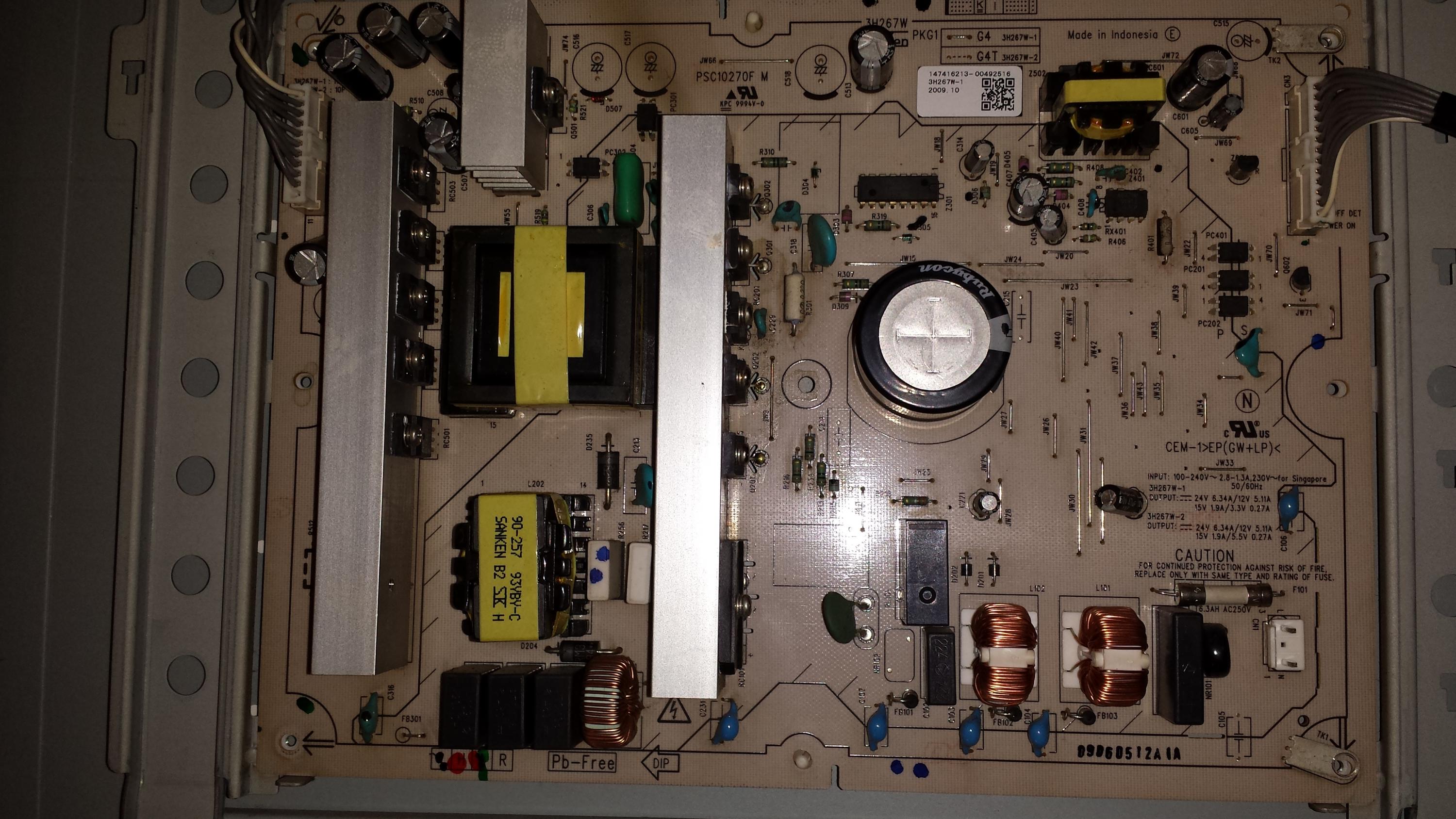 I pulled the power supply board for visual inspection & there wasn't anything obvious. I am not sure how to go about testing this OLED as it is a bit different than the last one (LG) I tried to repair. The only voltage listed on the PSU is 12v for T-CON. The 12v is not present...