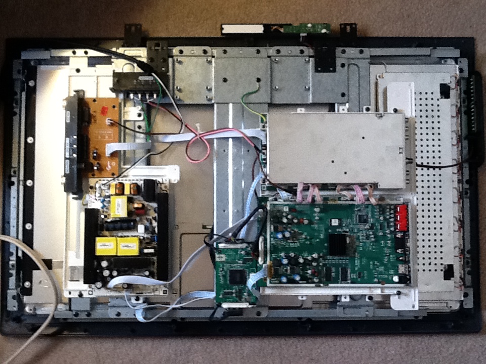 here are a few pictures of the power supply board also I believe one of the logic boards and the entire tv. quality is not too good on the last two