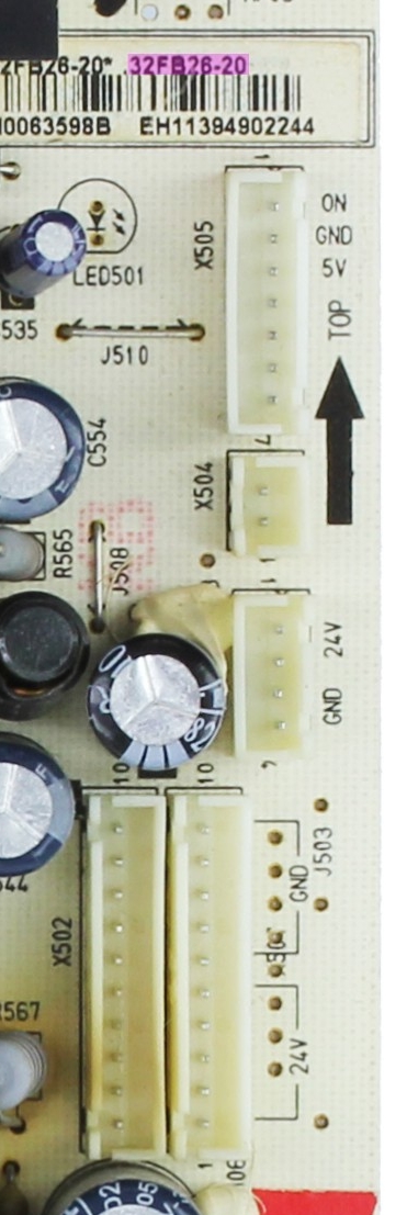Ok, disconnect the cable between the power supply board and the main board so we can force on the power supply using 1K resistor between the ON pin and the 5V pin, then check and see what you get on the main DC 450V filter cap and the 24VDC output. Main cap may be bad. Whne resistor not connected, the voltage on the main cap should be around 165~170VDC, when resistor connected, then it should kick up to 360~400VDC.