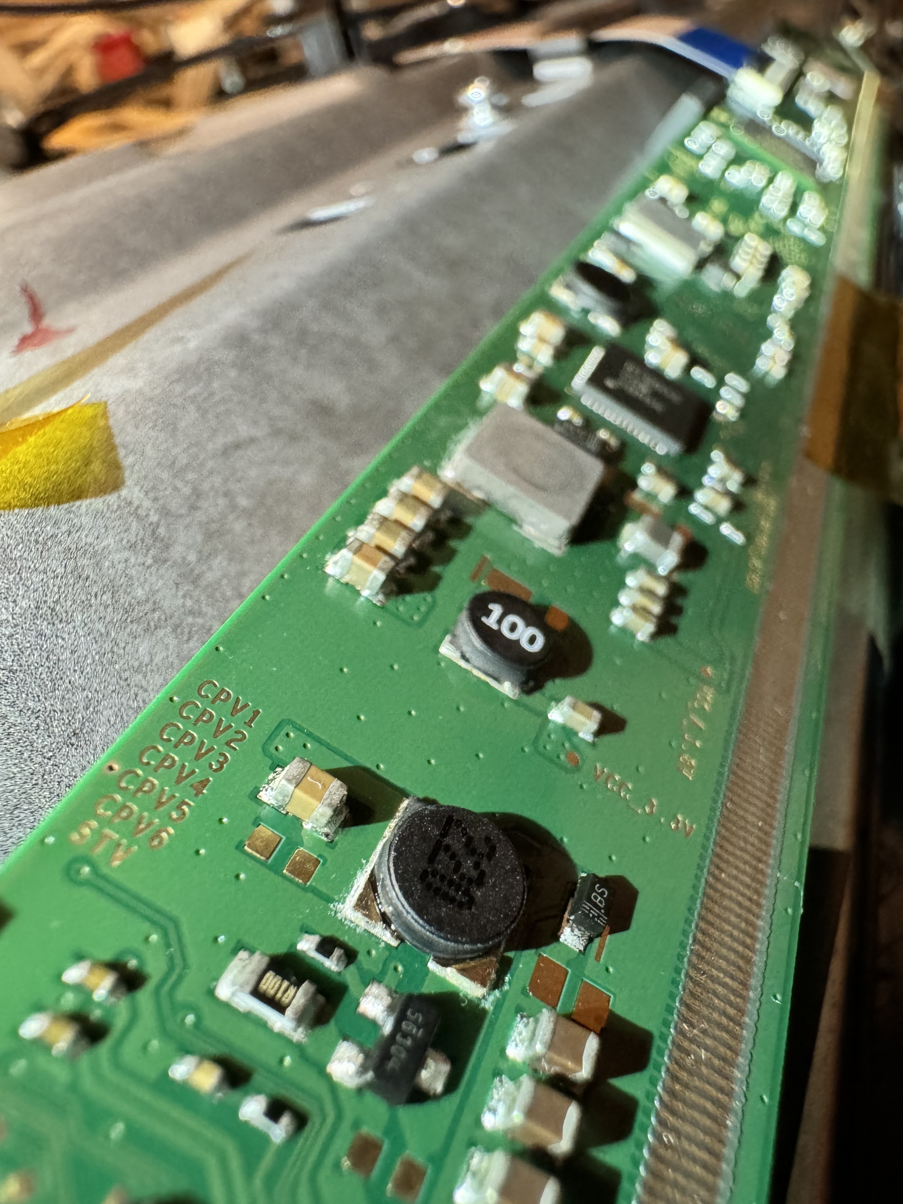 correct myself: sure about this is a tcon/panel issue.. 80% sure this isa bad soldering issue.. continue diving into trouble and you'll get success.. turn on tv, wait fault to happen, take freezing can with little hose, spray very few on components one at a time starting with bga or qfn IC