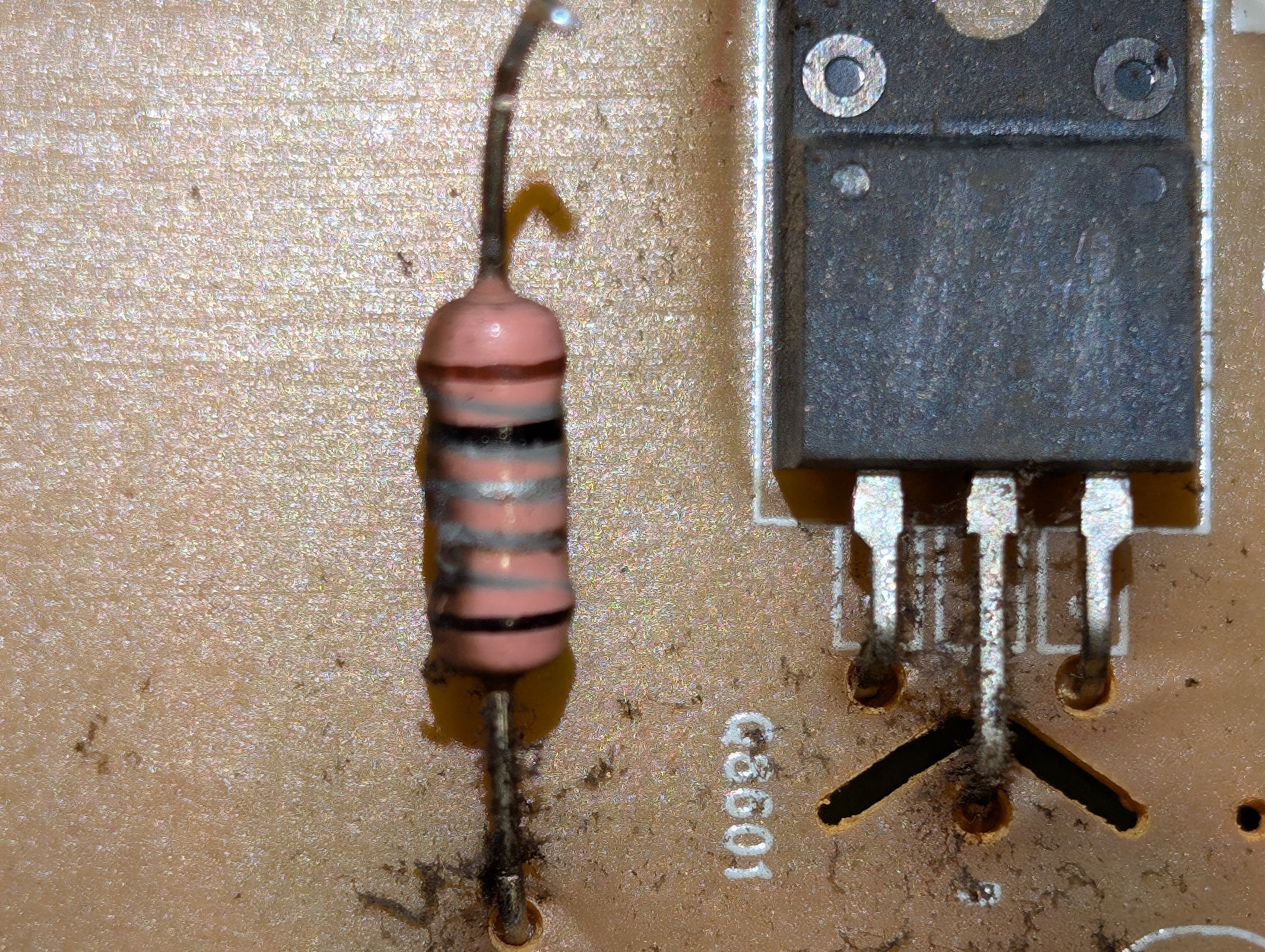 A couple days ago I got my pack of resistors and decided since I had an excess of them, I would replace just that and give it a shot. As expected, the new one popped immediately upon plugging in the tv. So last night I replaced it again as well as a nearby transistor. The transistor had continuity between all 3 legs so I assumed it was completely shorted. The identical one next to it has continuity between Source and Drain pins, which I don't *think* it's supposed to? I didn't have an exact match so I went with a higher voltage one from another board. After plugging the tv back in the resistor did NOT pop, so that solved that I suppose. I had a green standby light but the tv still will not power on.
