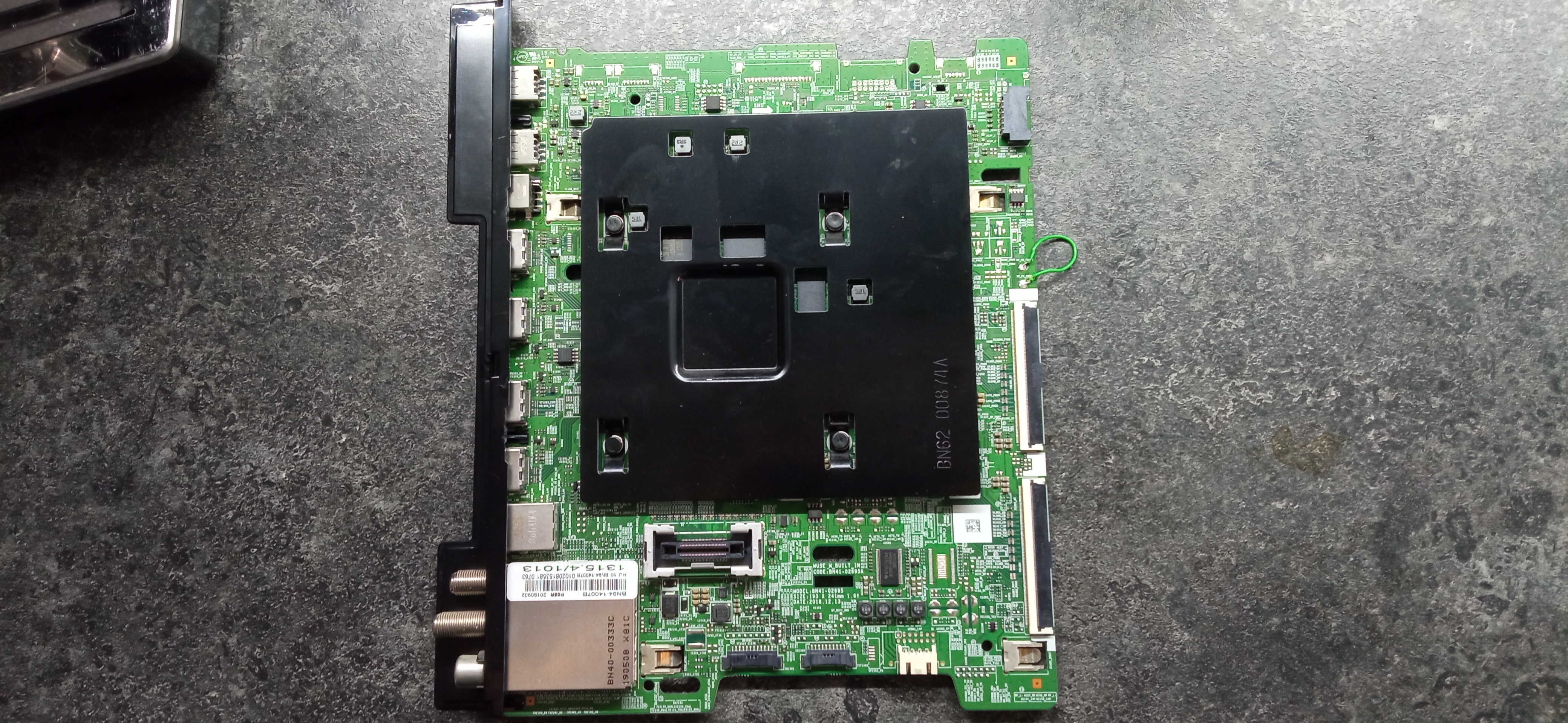 a friend of mine gave me this TV to fix, with common SAMSUNG TV issue - damaged panel. Turning on, sound is present, but no picture. So I went directly to standard process, connecting two pads together with a wire ( see in the picture ), and then removing flex cables. With right flex connected, there was half screen working, but still no picture ( disappearing colors and similar weird stuff ) + working sound. With left flex connected, TV is restarting + working sound. I supposed, left side is damaged, so I then blocked all 8 CLK pins ( going from 0R resistors on the second picture ) on left flex, which is connecting to the board going straight to the panel. But this didn't fix the issue, it still behaves the same.