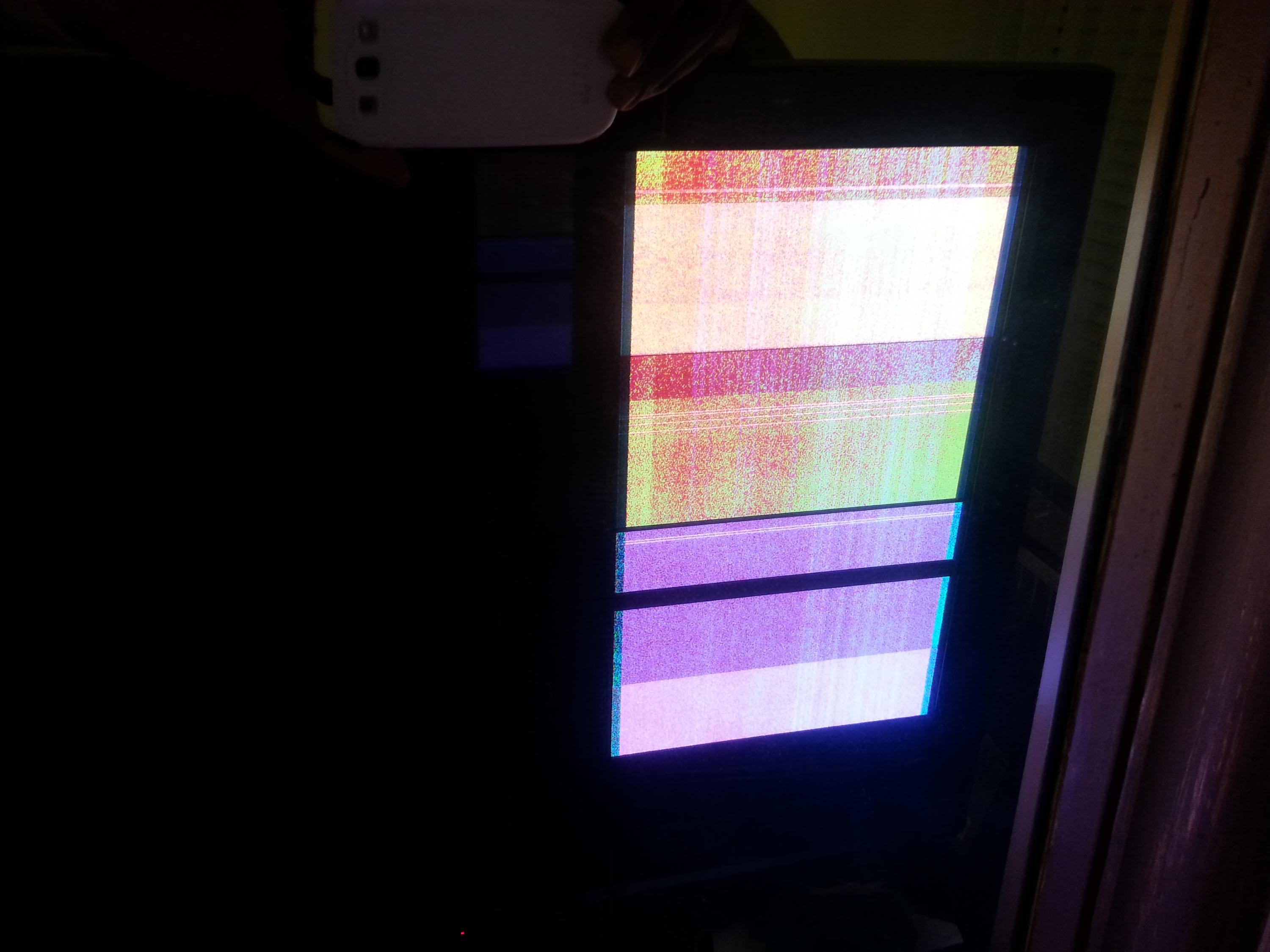 Heard a loud pop on my TV about a month back, followed by the 7 blink code. Did some research and isolation tests, figured out it was a bad SC board. Replaced the board with one from ebay. TV fired up but the screen looked glitched out, like an old NES game(pics attached).