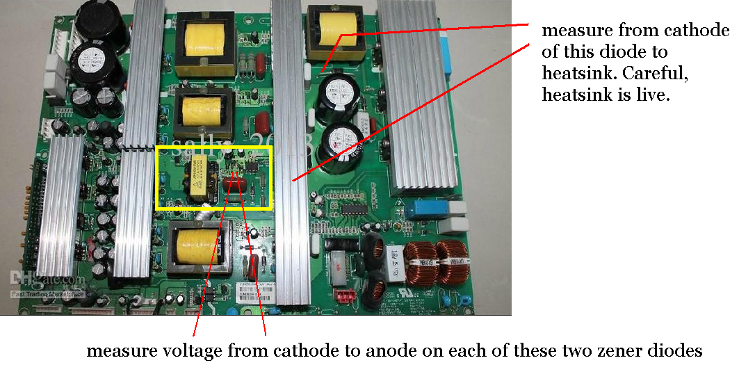 From cathode of D103 to heatsink, do you read high voltage DC?