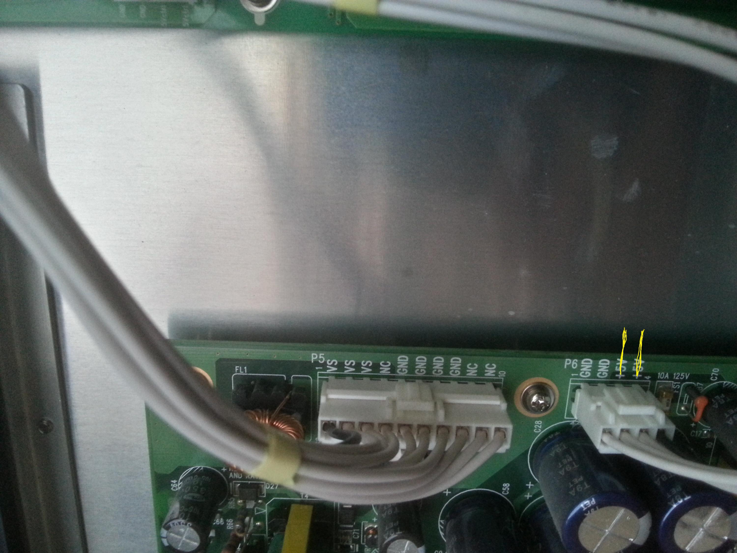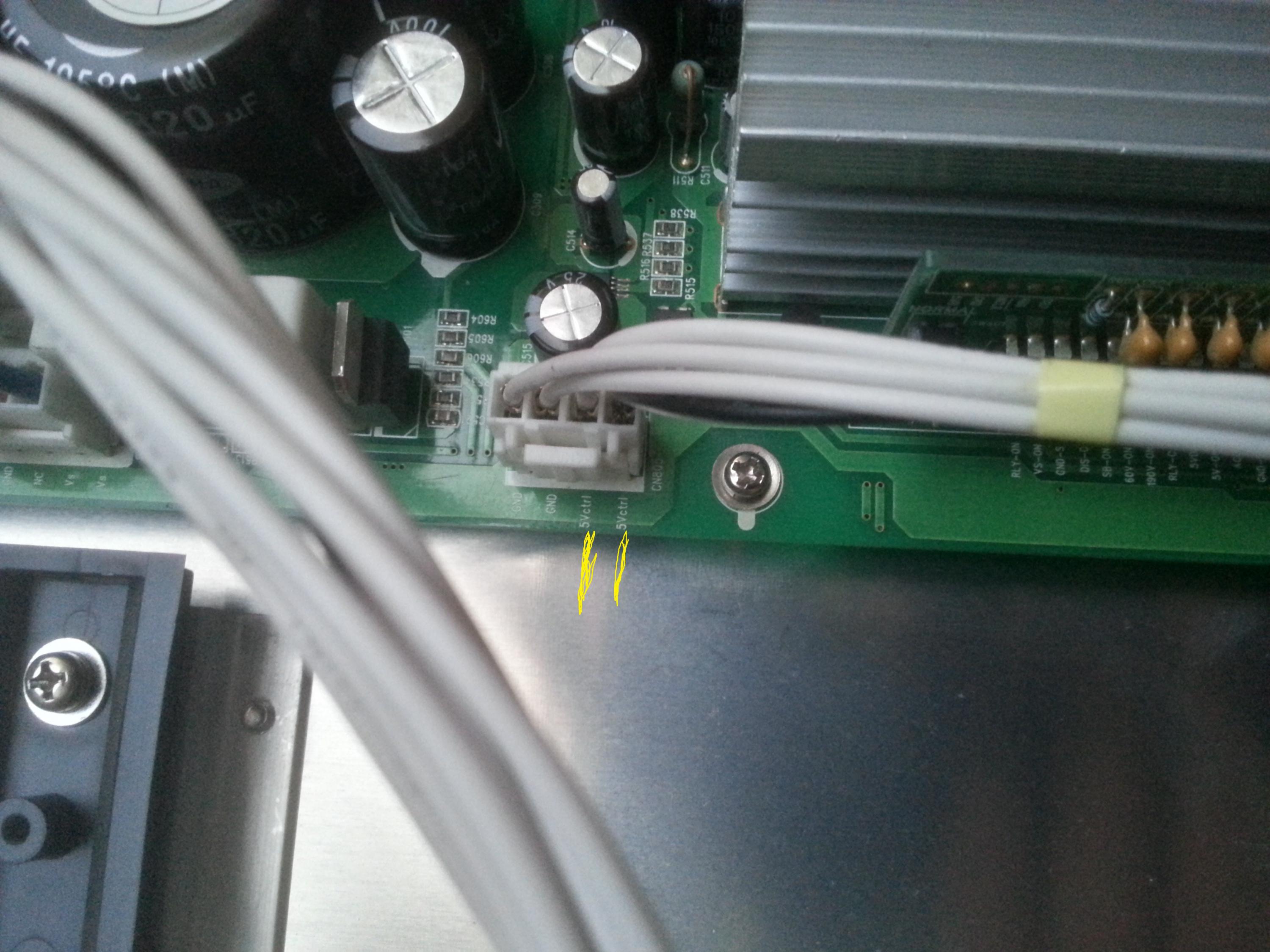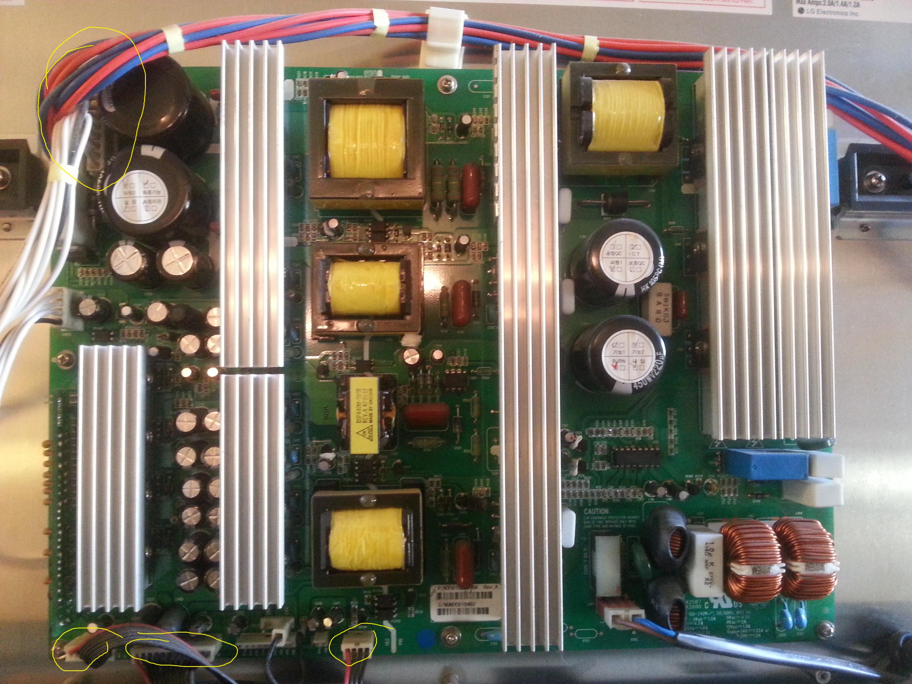 i have checked the voltage on the points marked in yellow, nothing at all no standby light nothing. i have done a minimal amount of checks as i was just going to replace psu. there is a big blue block (relay i think ) found a post somewhere saying it might be that, its a bush 42" PLASMA, i do not have model number as of yetAttached Filesif you find these attachements useful please consider making a small donation to the site