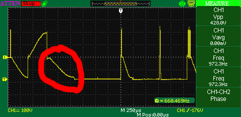 This waveform is more or less correct except the ramp down is too long which is causing your overdiffusion, I think.