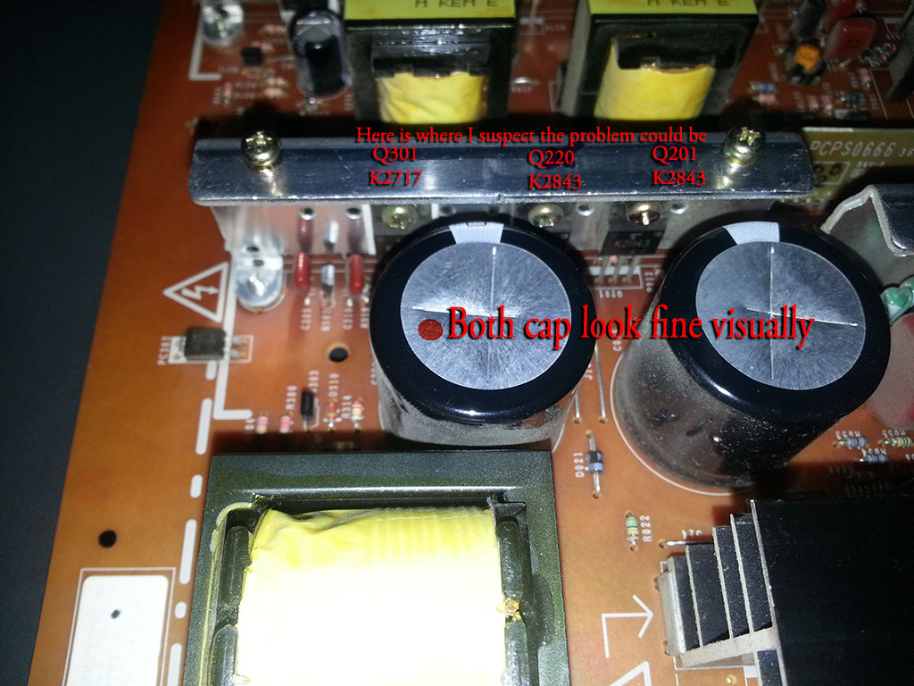 I will be removing the Mosfets, large filter capacitors, bridge rectifier from the board and test out of circuit.