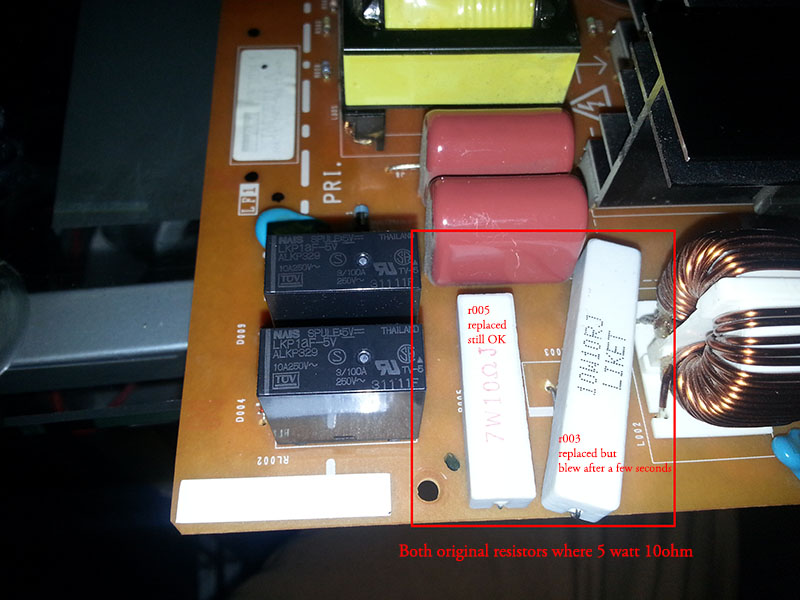 I'm thinking that the Mosfets pictured may be the cause but I'm worried about damaging the surge protection resistor again.