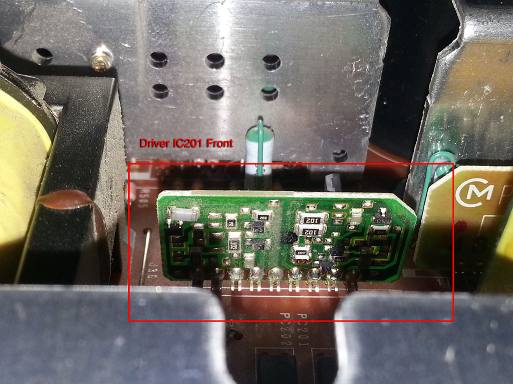 The main problem is I am not sure if the daughter board and what I think is the driver IC201 could also be short? My dilemma is I don't know how to test this IC for shorts or other faults and it has loads of SMD components on it.