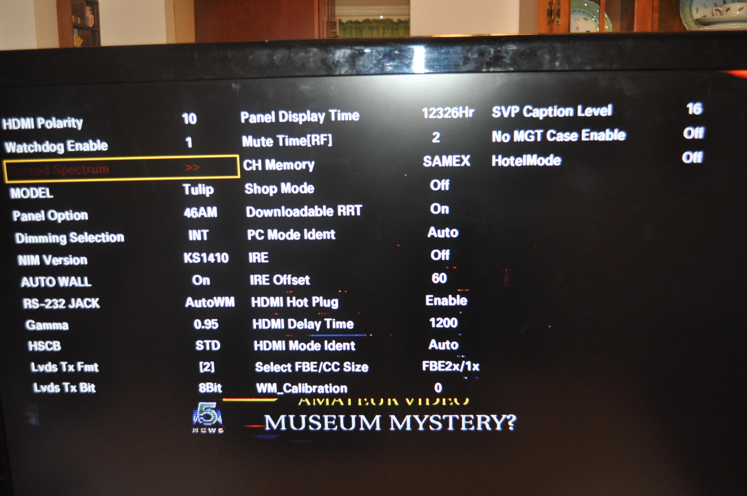 Ok was able to get into service menu. Got to the option Bytes but the LVDS had only two settings that you could adjust Lvds Tx Fmt and Lvds Tx Bit. I did try different setting in each and the picture would change but was never correct. I also tried changing panel type with the same results. I did this with both mains I have the original and the one I just bought (could be bad also) I checked panel hours and with original board 12k 7k with board I just got.Comment