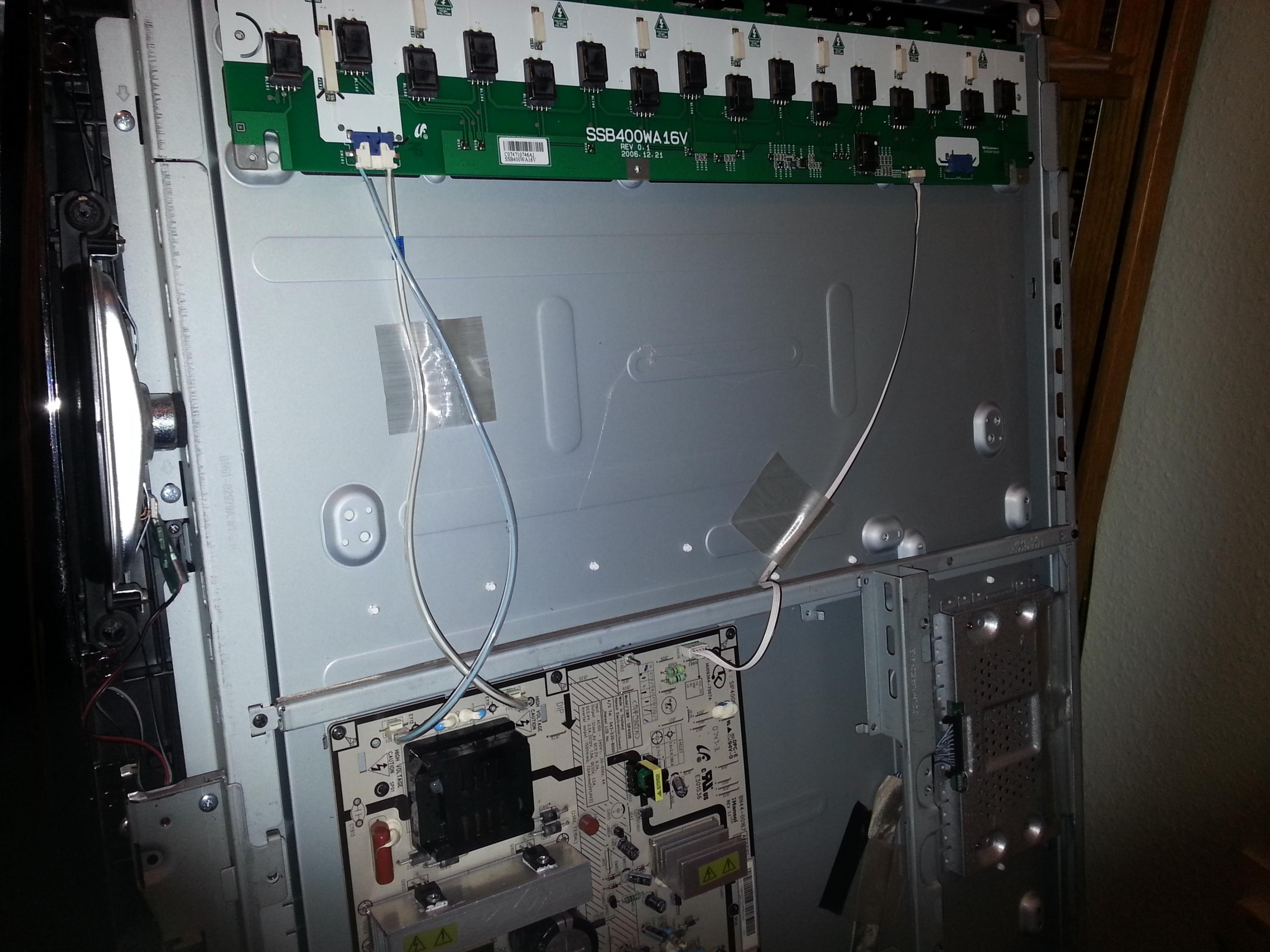 But now I am presented with another fault on the same set. After I replaced the main board and got the picture up it turns out that the whole screen does not light up only the right hand side lights up, The side that the inverter fits!!.