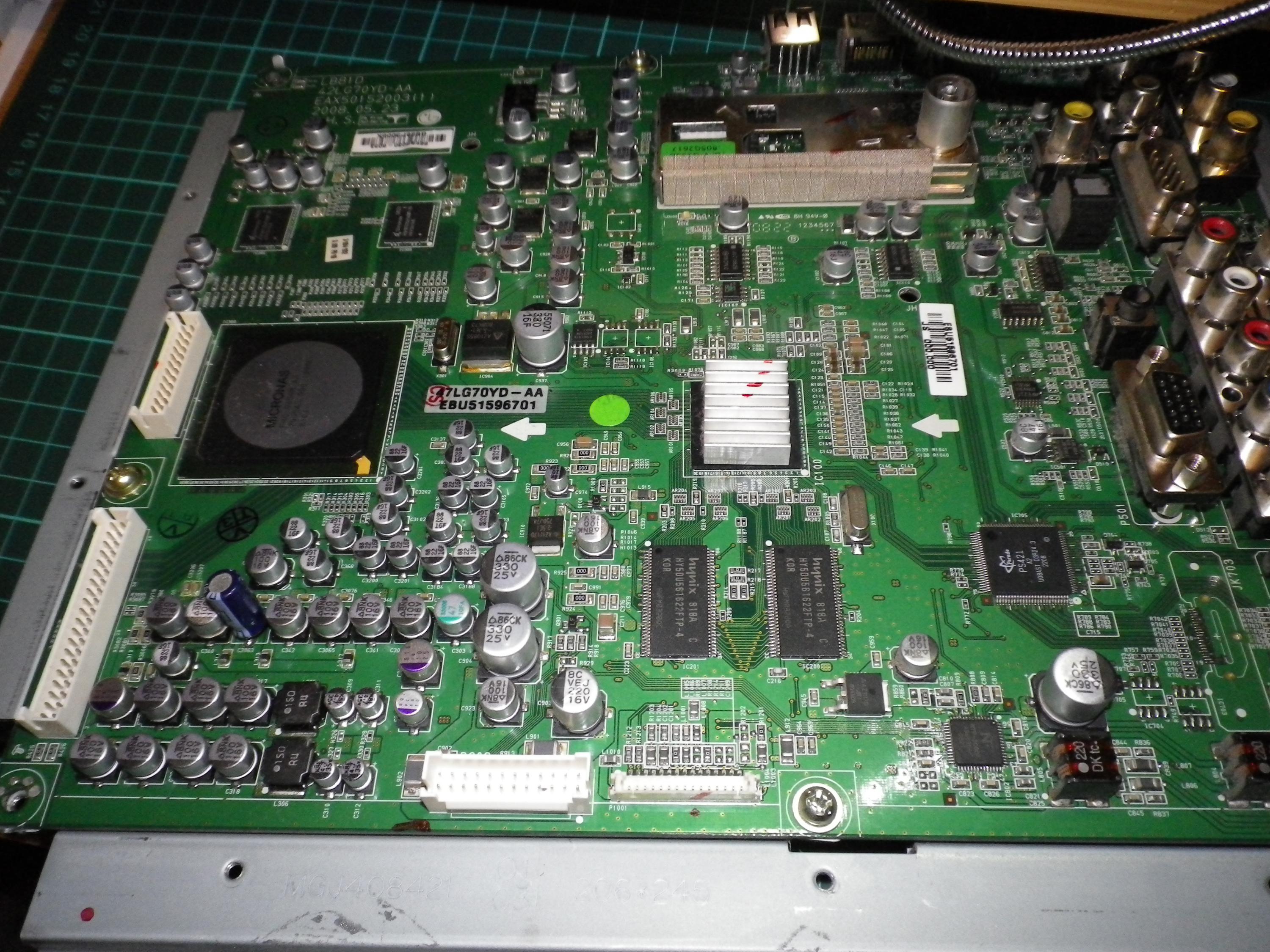Alrighty so i have a 47" lg lcd tv symptoms are its displaying vertical lines with mild display of the "channel" box in the right hand top corner, the screen isnt cracked or damaged in any way all the connectors are tight and re-seated capacitors all appear to be okay (i dont have an esr meter Yet) i have done alot of research but couldnt find anything into it without it being that the panel is faulty being the main thing here which dont belive ot be true as it displays picture fine when its not alot of white in the background , now i have done some tests and tried unplugging each side of the screen from the t-con board and have attempted to rule things out and the only thing i could come to was that the screen works ok if i have it in composite or other av input so long as there is nothing plugged into the back which is leading me to it being a fault in the processing board now i have some videos of it in action on youtube ill post a link to so that you guys can see exactly whats going on, I realy hope i can fix this tv and i realy hope you gus have some thoughtfull ideas for me!