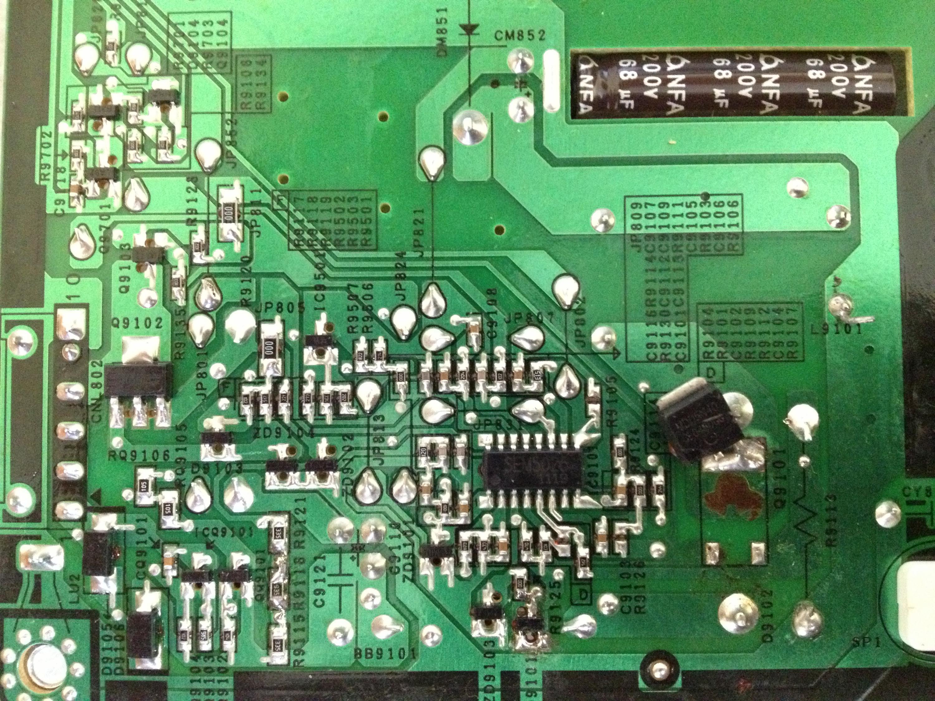 The PFC Voltage booster will kick in and boost the voltage on the main cap from around 325VDC to 370~400VDC when the power supply board receives the PS_ON signal from the main board.