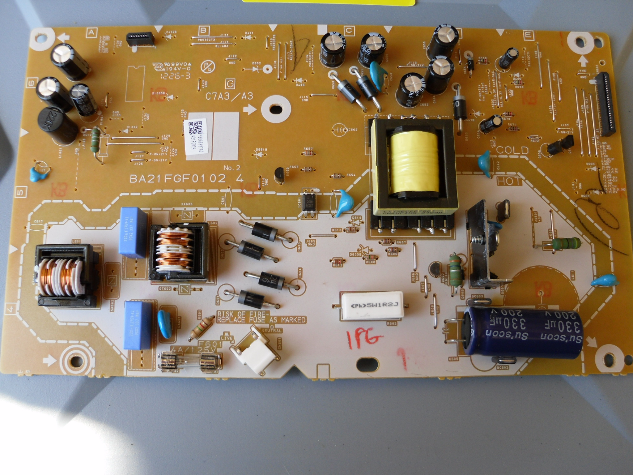 Hi, I have a Magnavox 32ME402V and the tv had a blown fuse. I replaced the fuse and the set has no power. The pfc has no voltage at all. The tv is made by funai.