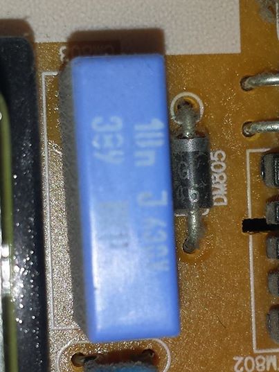 22nF is a lot easier to get hold of; if you want, you can try that first. Make sure it works on all modes and all brightnesses. 18nF could be penny pinching by Samsung or maybe it's important for matching the transformer, I do not know. The schematic says 18nF.
