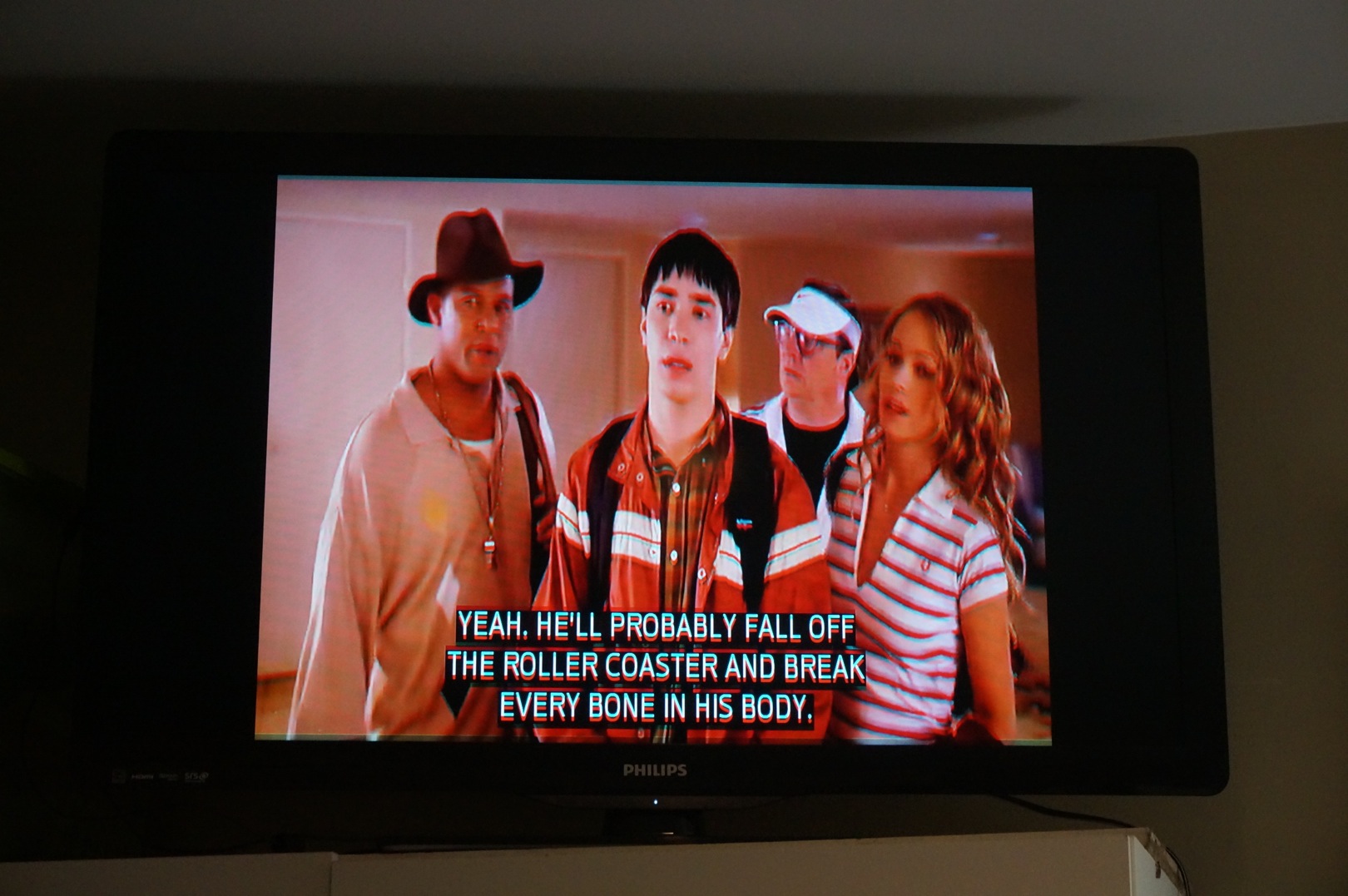 This past christmas I bought a Philips 40PFL4707 off Woot, refurbished. I've barely used it in that time, yet about a week ago the colors started to have problems. The red seems to be vertically off from the other colors, appearing lower. There is also a dark bar at the bottom of the image, I assume related to the colors not lining up. This happens on all inputs and to the menus as well. See pictures below.