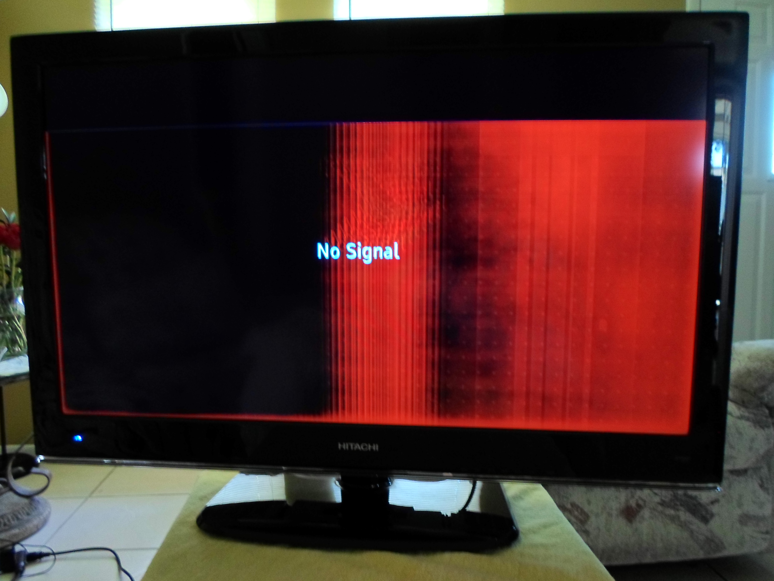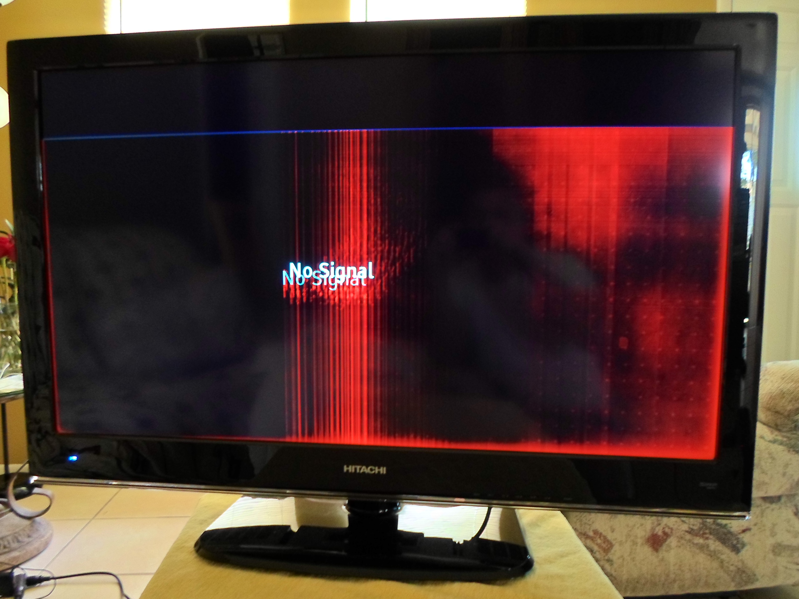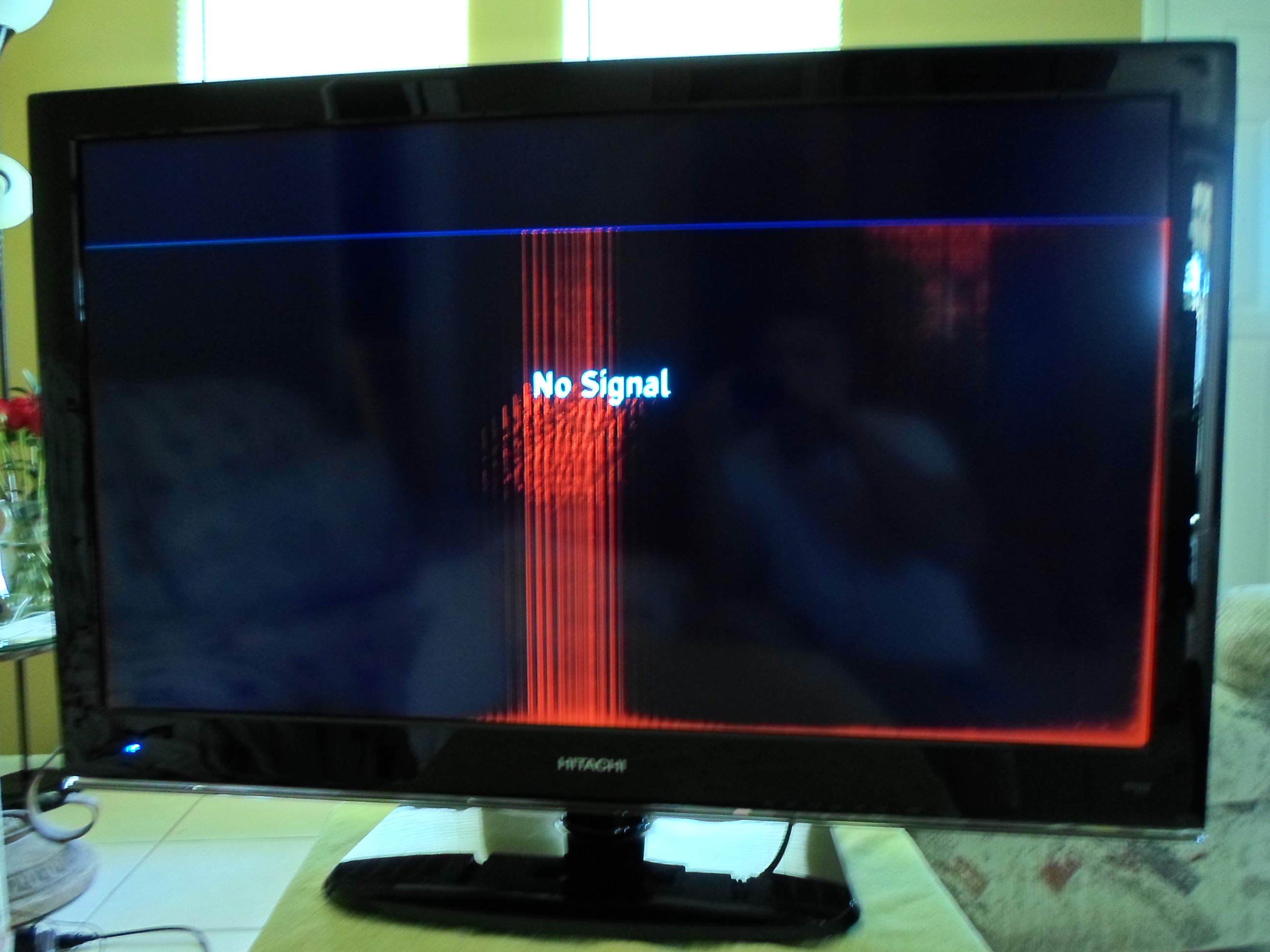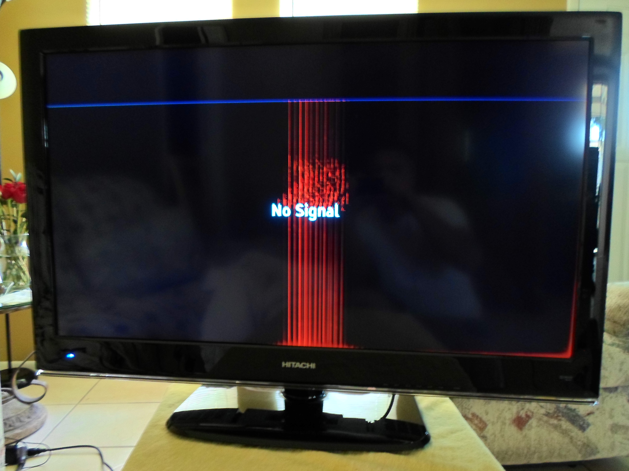When first turned on from cold it's solid red below the thin blue horizontal line. Then as you can see in the series of pics it starts going black. The "No Signal" creates somewhat of a red trail behind it as it travels around the screen.