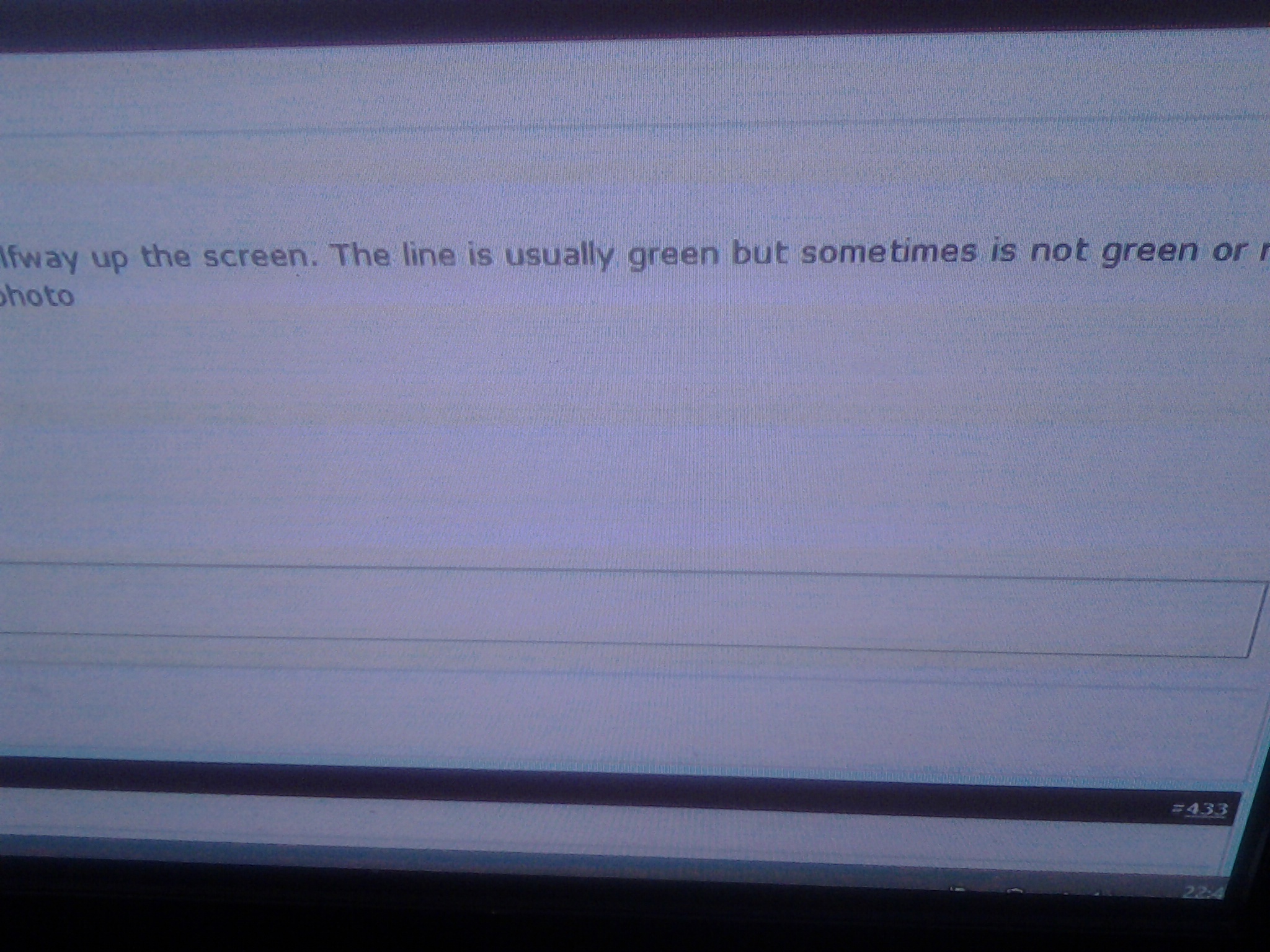 the lower 1/2 of the screen has become flaky....in and out, then finally goes black and you can only see the top portion.