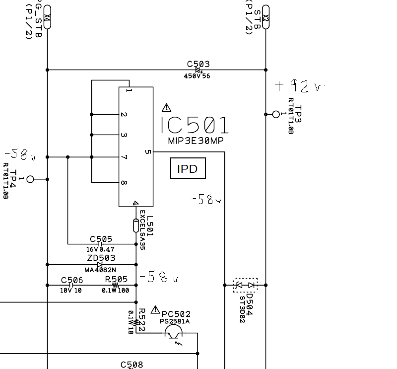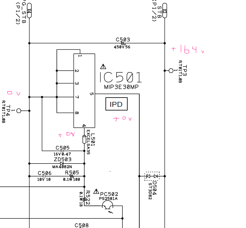 can't seem to find any info on these ICs - attached PSU schematic and voltage readings. is there panasonic test point voltages out there ???
