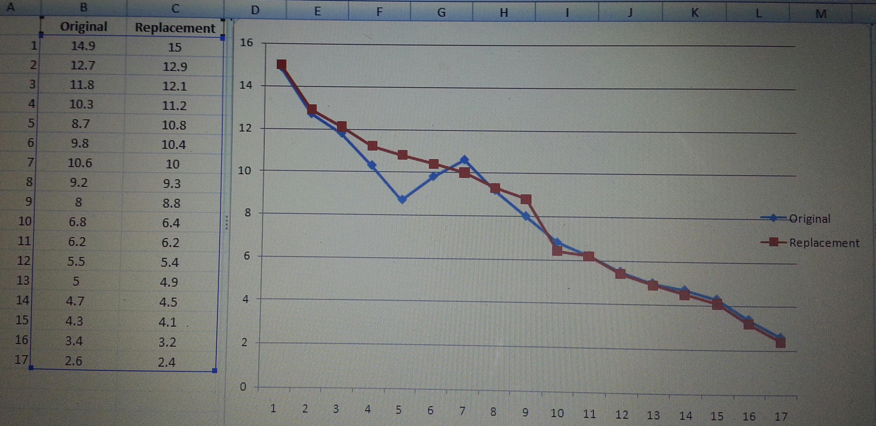 They are still bad. Volt 1 should start at 15V and Volt 2 should be closer to Volt 1 than it is. Also, the curve is not symmetric. The spreadsheet can't detect all faults.