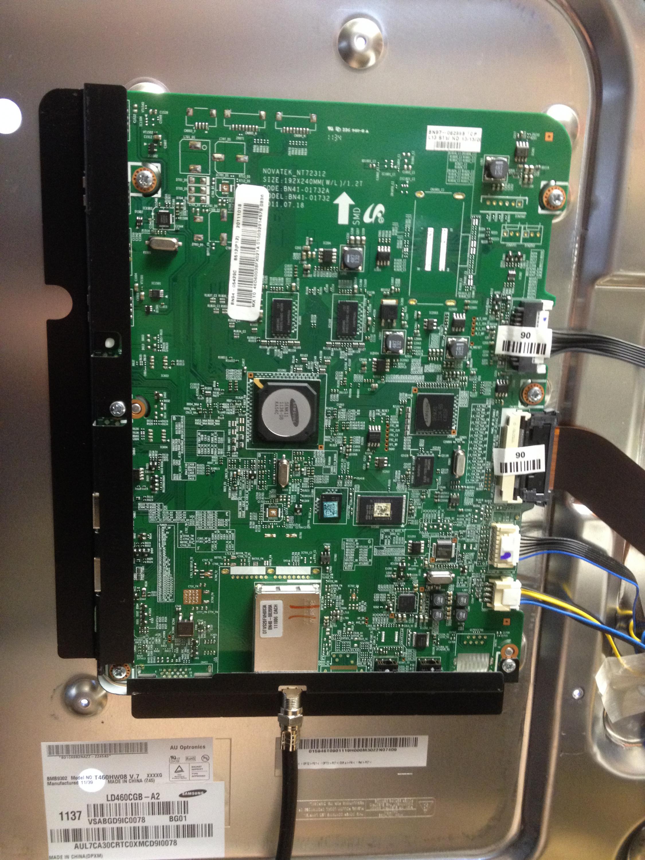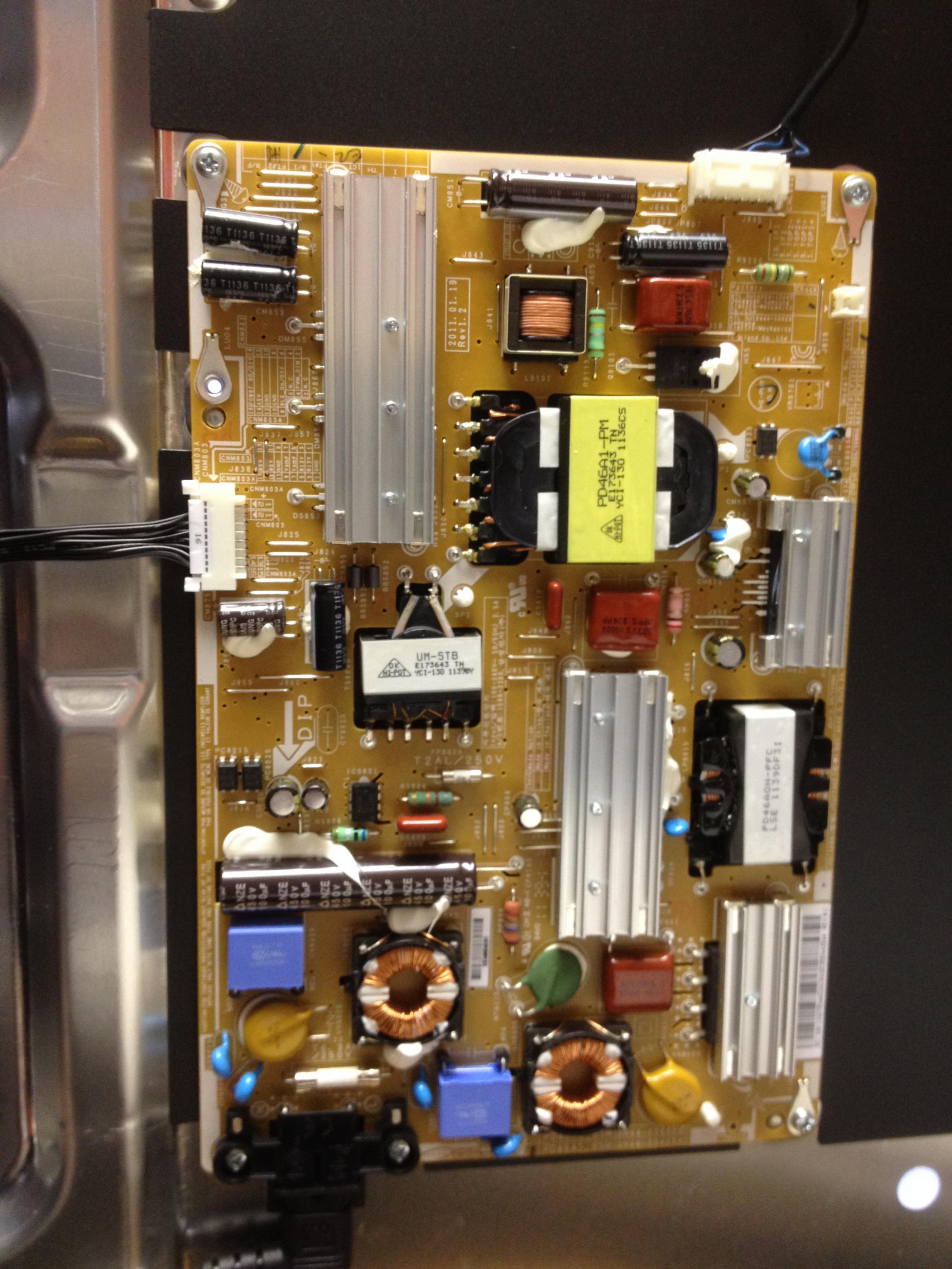 I have a Samsung 46in LED TV M# UN46D6003SFXZA. The screen goes from bright to dark and back and forth. The backlights do not seem to be dimming at all when you stand behind the TV. The voltages from the power supply to the backlight do not change when it goes dark. The picture kind of looks like it is flooded with red.