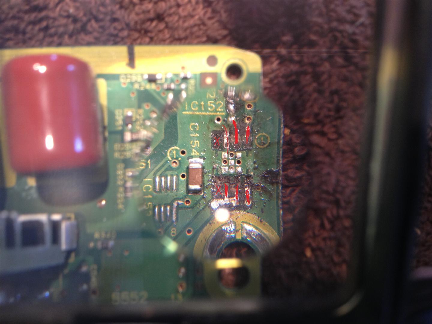 While removing IC-152,a 8 leg little chip,I accidentally damaged the pads on the board