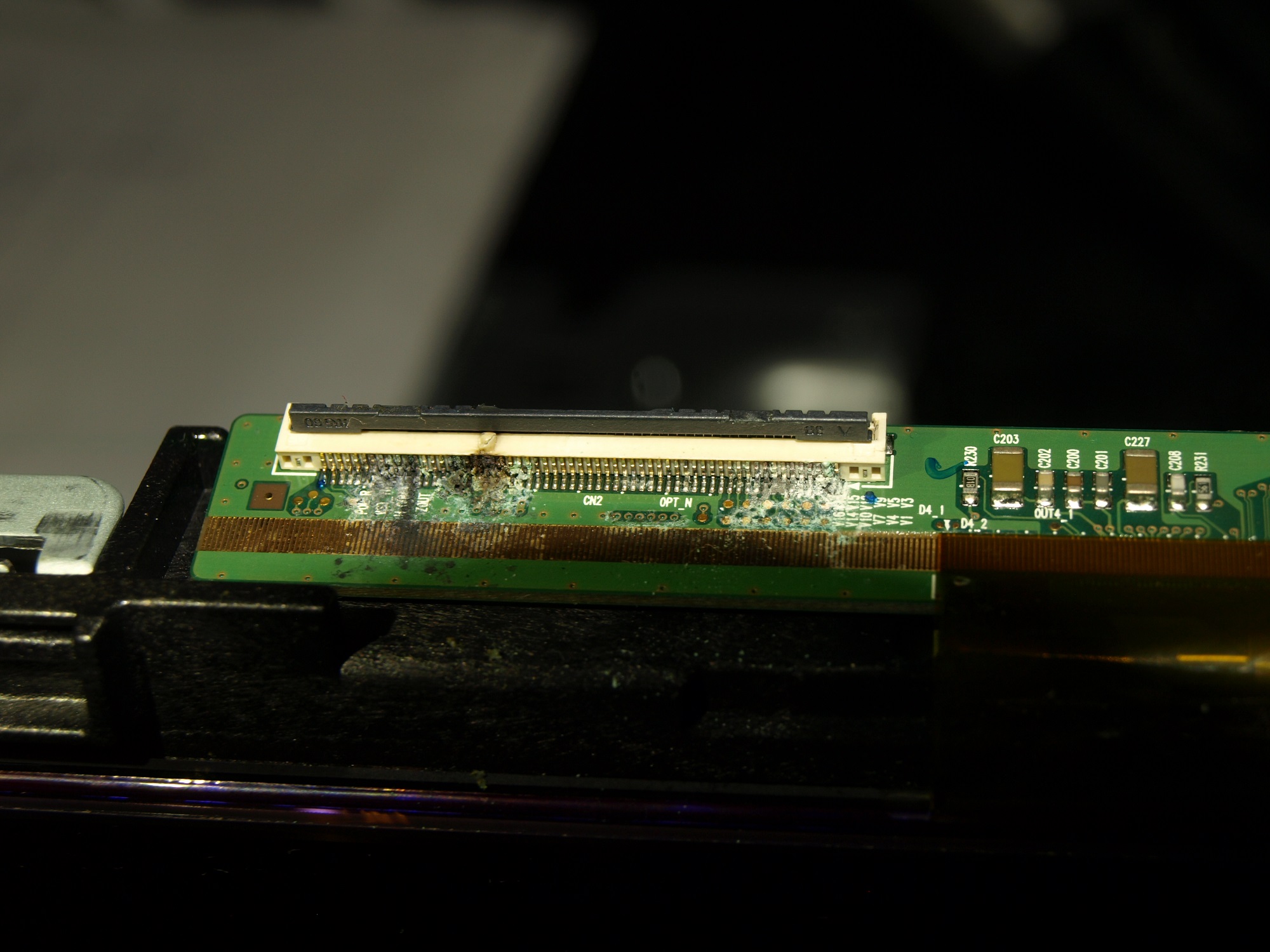 That might be the case, but I thikn there is more to it than that. To me it looks like a heavy build up of flux and the parts have corroded or reacted with metal case around the panel. The Ribbon cable actually burned in half and burned the connector. LG seem to think its a potential problem as they have escelated my concerns. That small bit of damage has rendered the units write offs. To me its an abvious design flaw.Comment